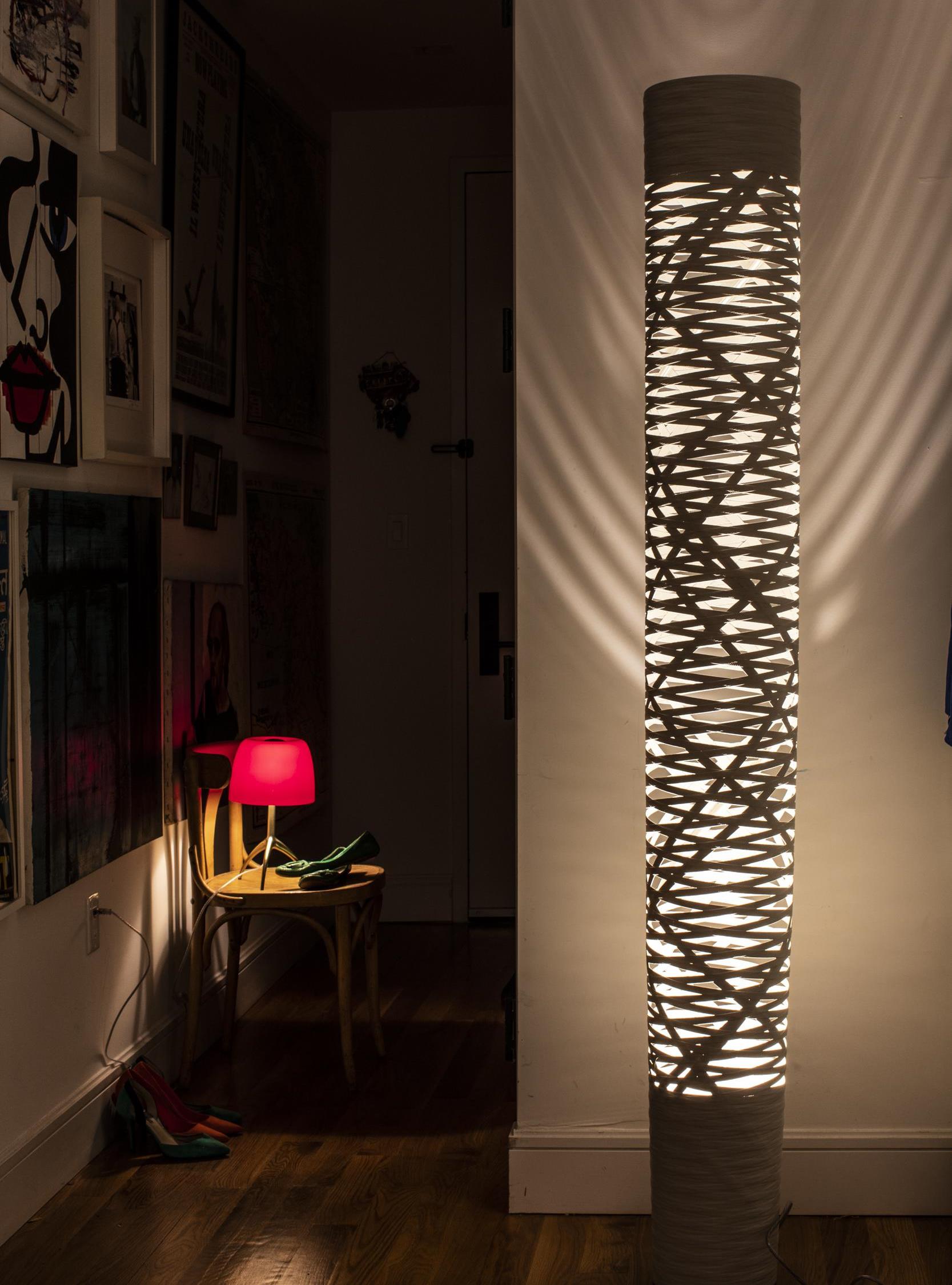 With its intertwining fibreglass and resin enveloping it like a ribbon, the Tress floor lamp creates an extraordinary game of shapes, lights and shadows that are projected into its surroundings. An original lighting idea, that is already an icon.