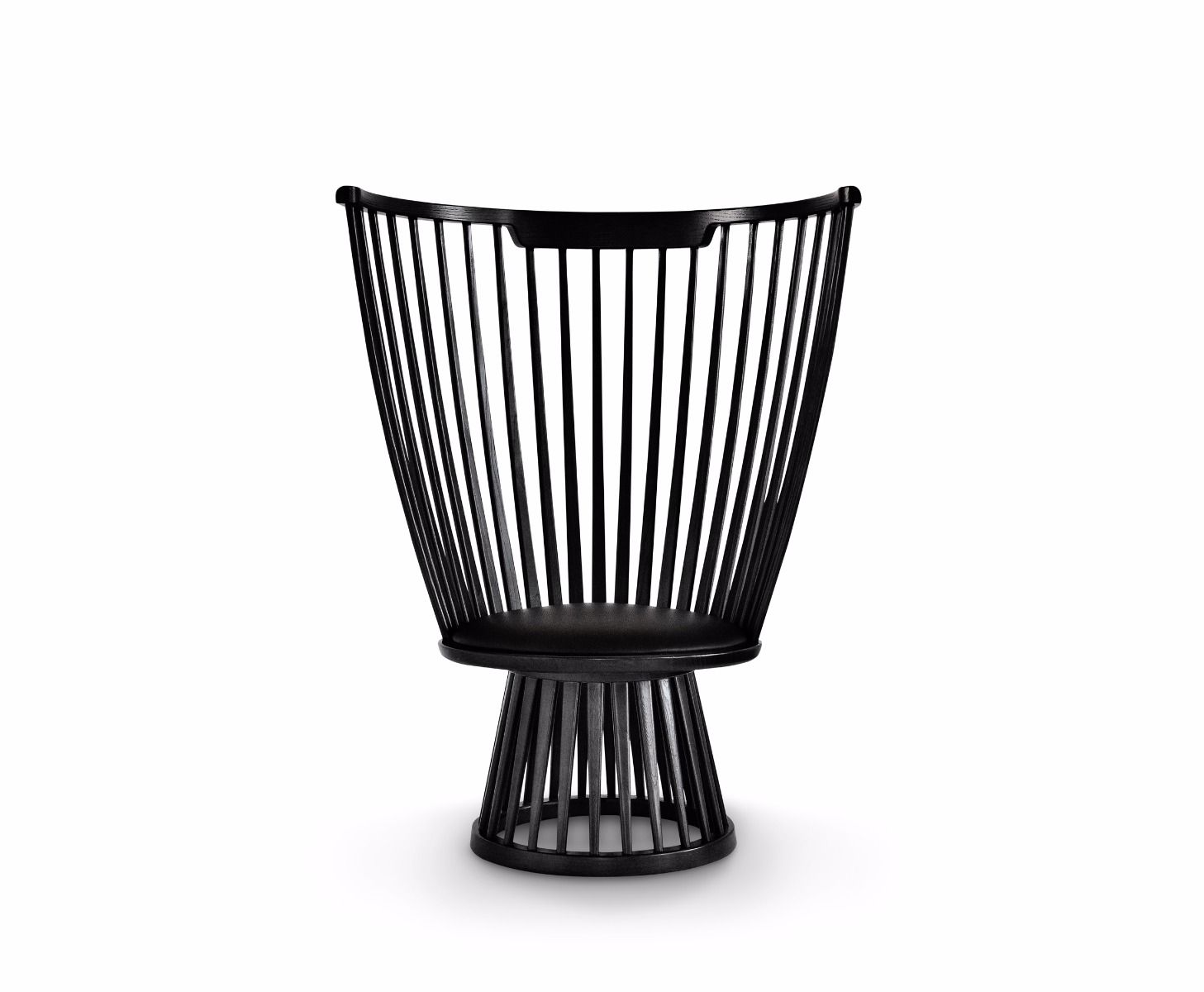 Fan is a modern take on the classical Windsor chair. A British archetype converted to a contemporary silhouette, creating an exclamation mark in the home with a semi-transparent structure that takes up minimal visual mass for a large and imposing chair. Originally a dramatic and sculptural take on a British design classic, Fan is available as a high back chair, dining chair, stool and table.