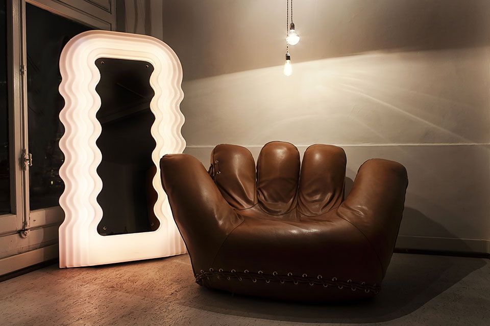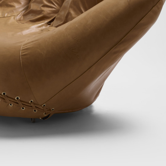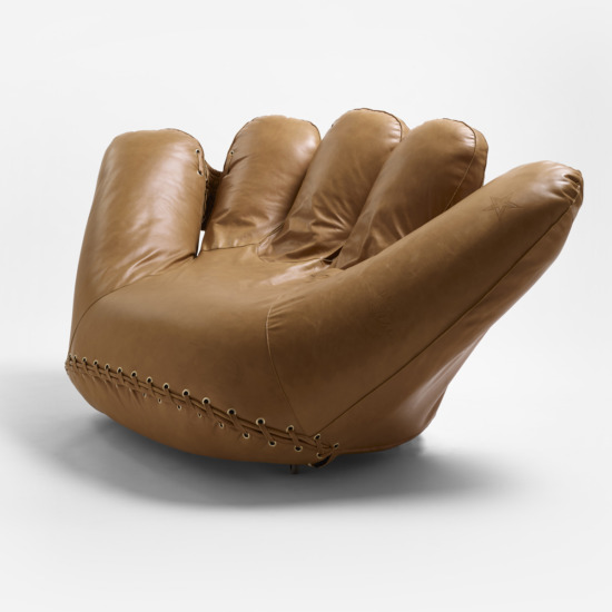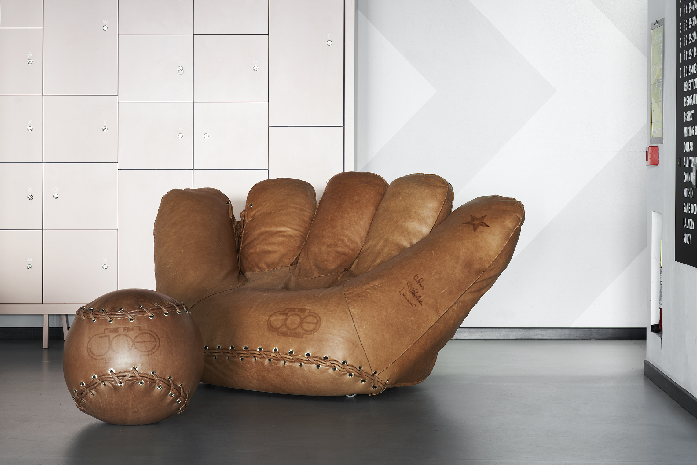 Joe is a big comfortable armchair in the form of a giant baseball glove, created in 1970 by De Pas, D’Urbino and Lomazzi. With this project the designers, inspired by the poetics of Pop Art, gave material form to their admiration for the legendary American baseball star Joe DiMaggio. With a courageous shift of scale, they transformed the glove into a welcoming place to sit, inserting a hyperrealist figure borrowed from the world of art into the domestic environment.