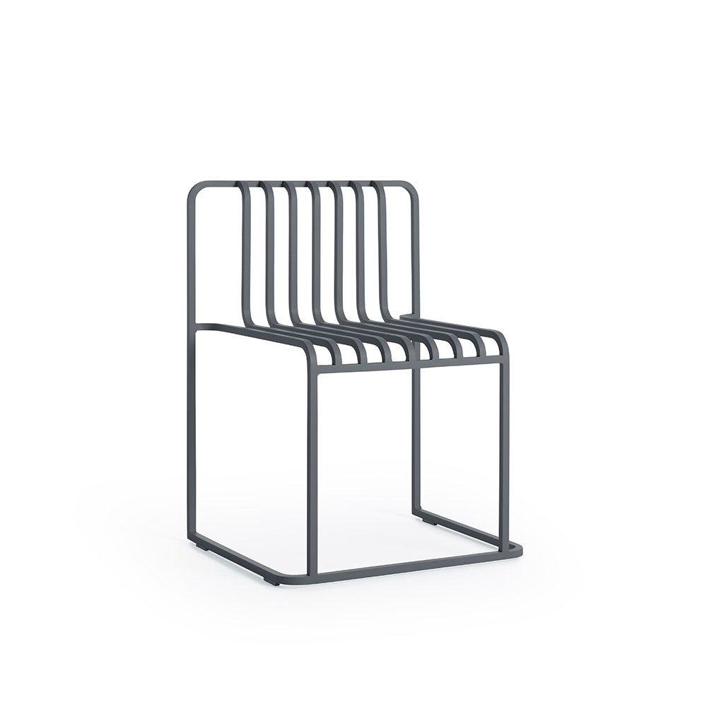 Grill introduces a linear language, pure and light visually and invites us to blur the limits that separate interior space from exterior. The Grill chair is available upon request in a wide range of colours.