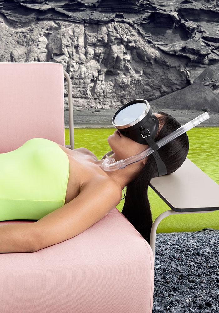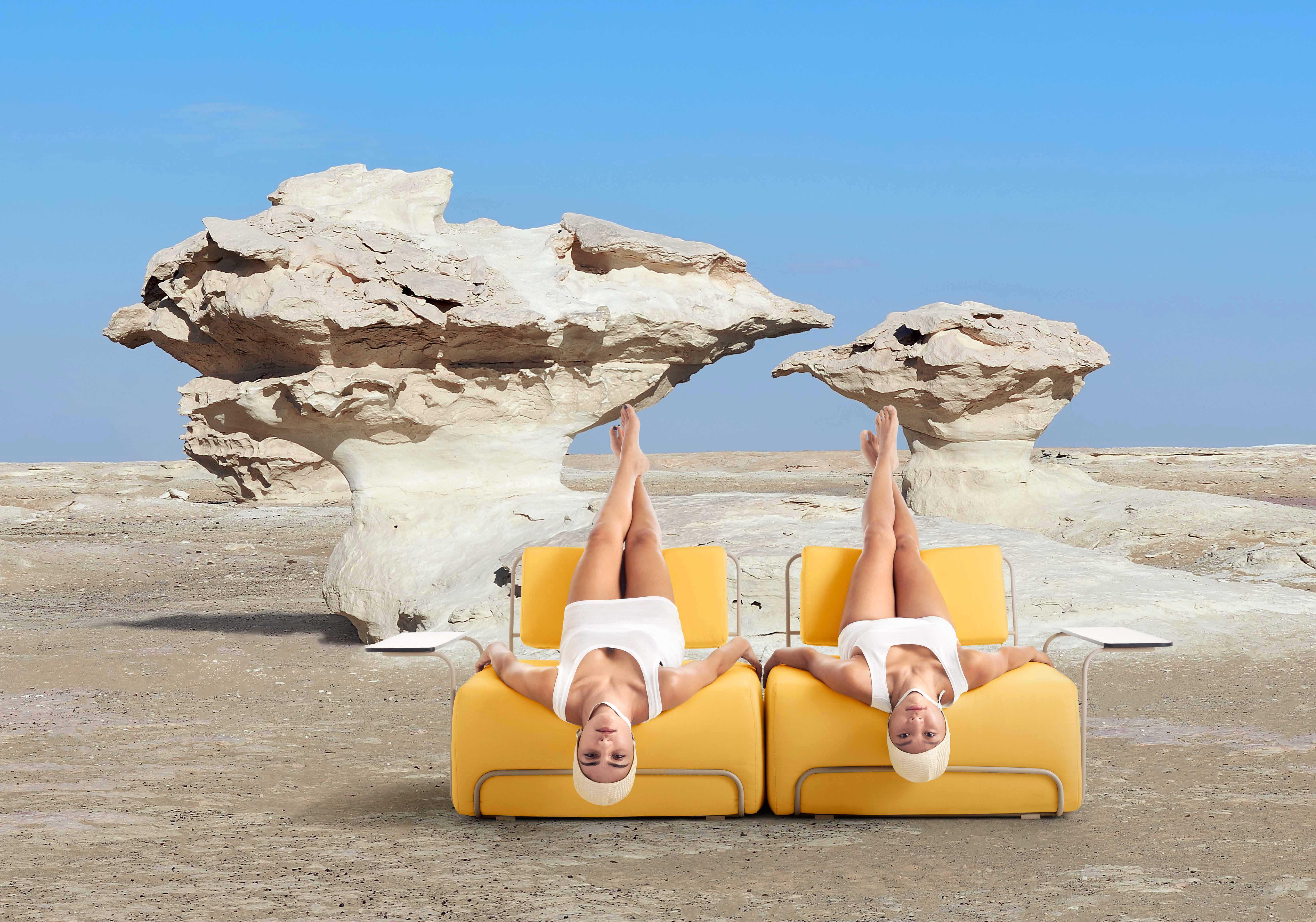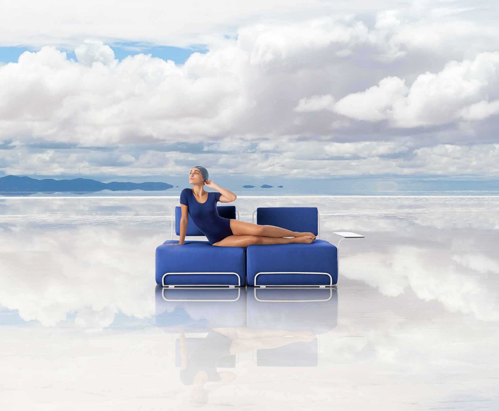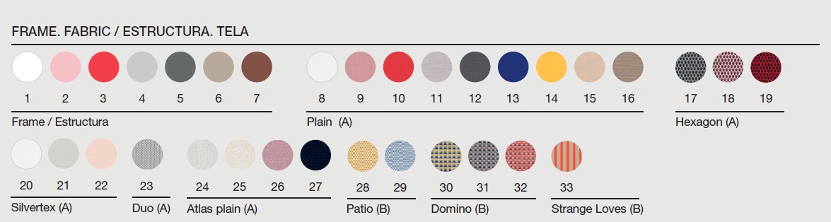 Material: Powder-coated steel tube structure. Phenolic plate.Polyurethane foam rubber covered with water-repellent removable fabric.