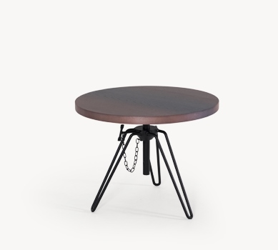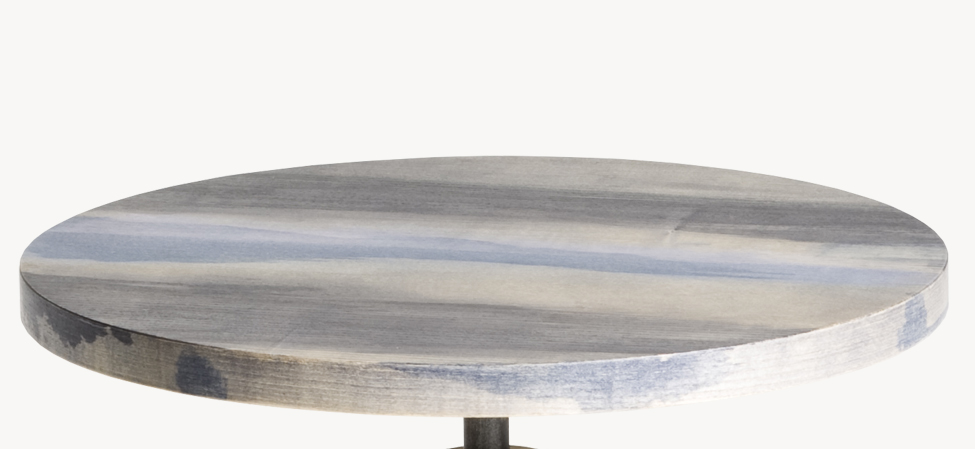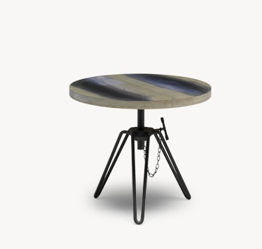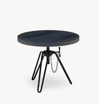Available in 3 dimensions Round cm.Ø.50xH.35 και cm.Ø.50xH.50 Rectangular cm.140x70xH.29 and 4 different colors of wooden top, indigo blue, weathered grey, denim rust, concrete, with black metal base.