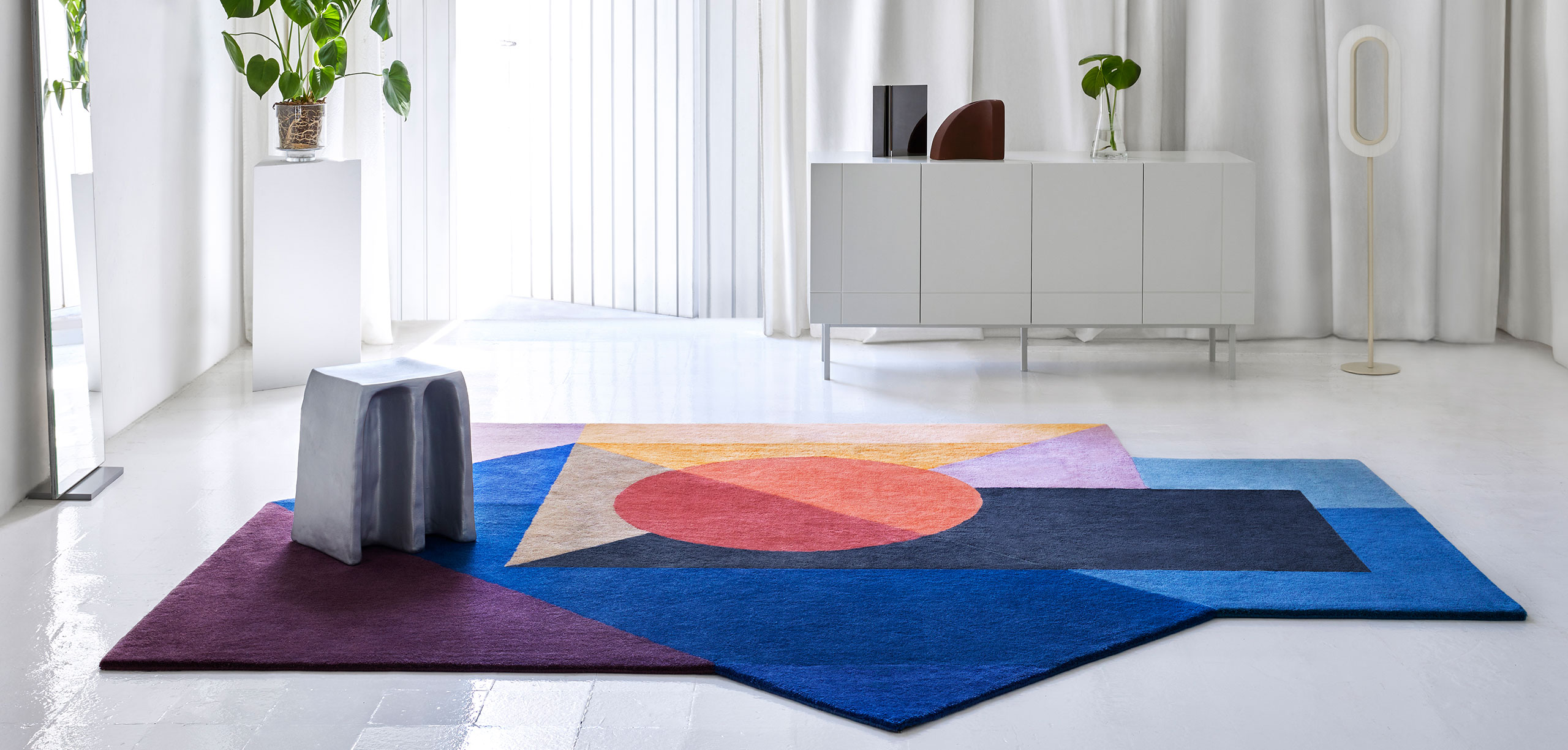 ZOE is the result of the first collaboration between Daria Zinovatnaya and GAN. The collection is made up of two highly visual rugs that express the importance of form and color for its creator and tell us about its references: Russian suprematism and the Bauhaus. It is made by means of laborious hand knotting or hand-knotted, which allows for a great profusion of details and a fluffy and warm finish.