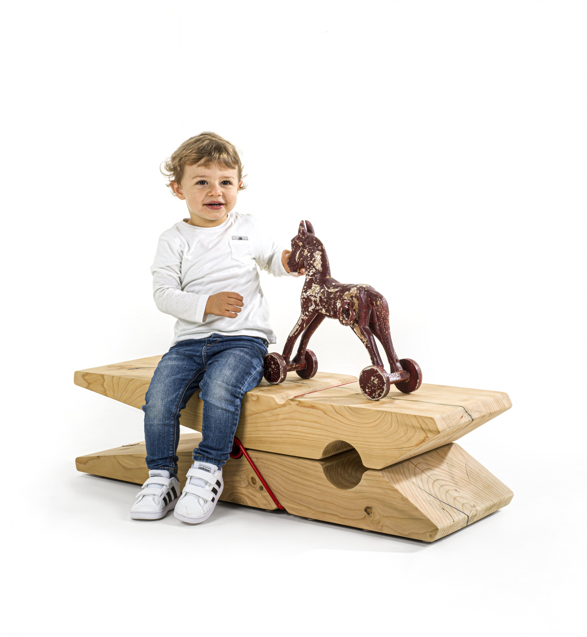 The iconic Molletta bench, characterized by a design that plays with the typical out-of-scale of Pop art, comes out with its smaller version dedicated to children. Is made of solid scented cedar worked from a single block, is hand finished with oil and natural wax, the guarantee of a completely natural product.
