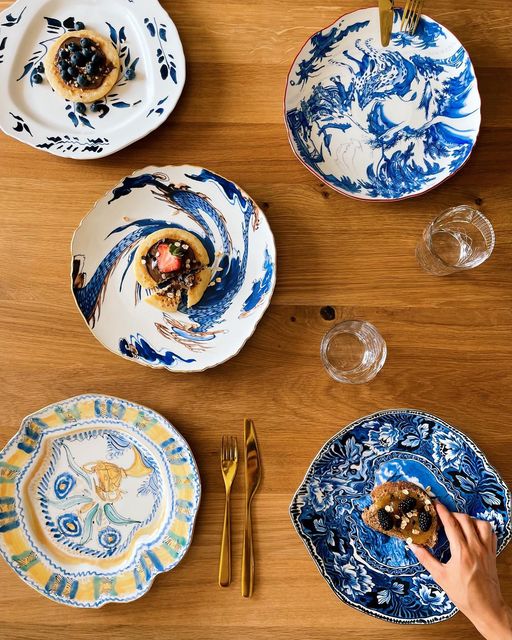 A classic look with a crazy twist for party lovers and eclectics. Beautiful on the wall, marvelous for an unexpected distorted table set up.