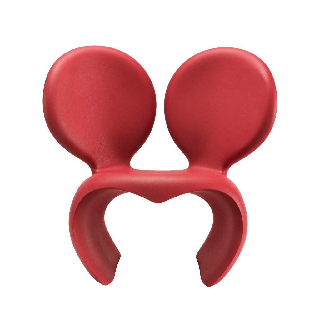 Originally created in 1988, Don’t F**k With The Mouse it’s one of Ron Arad’s most iconic armchairs. As a limited edition product it has undergone numerous metamorphoses over the years – finally it has become an industrial product proposed by Qeeboo for both indoor and outdoor spaces.