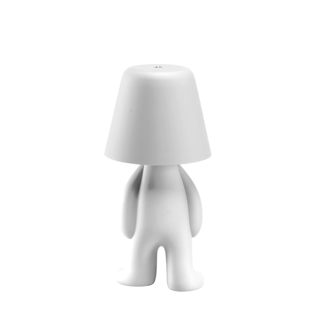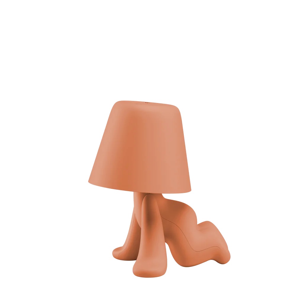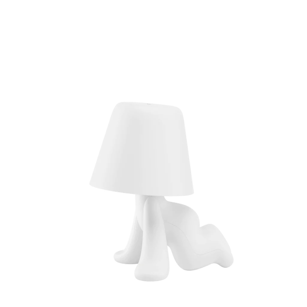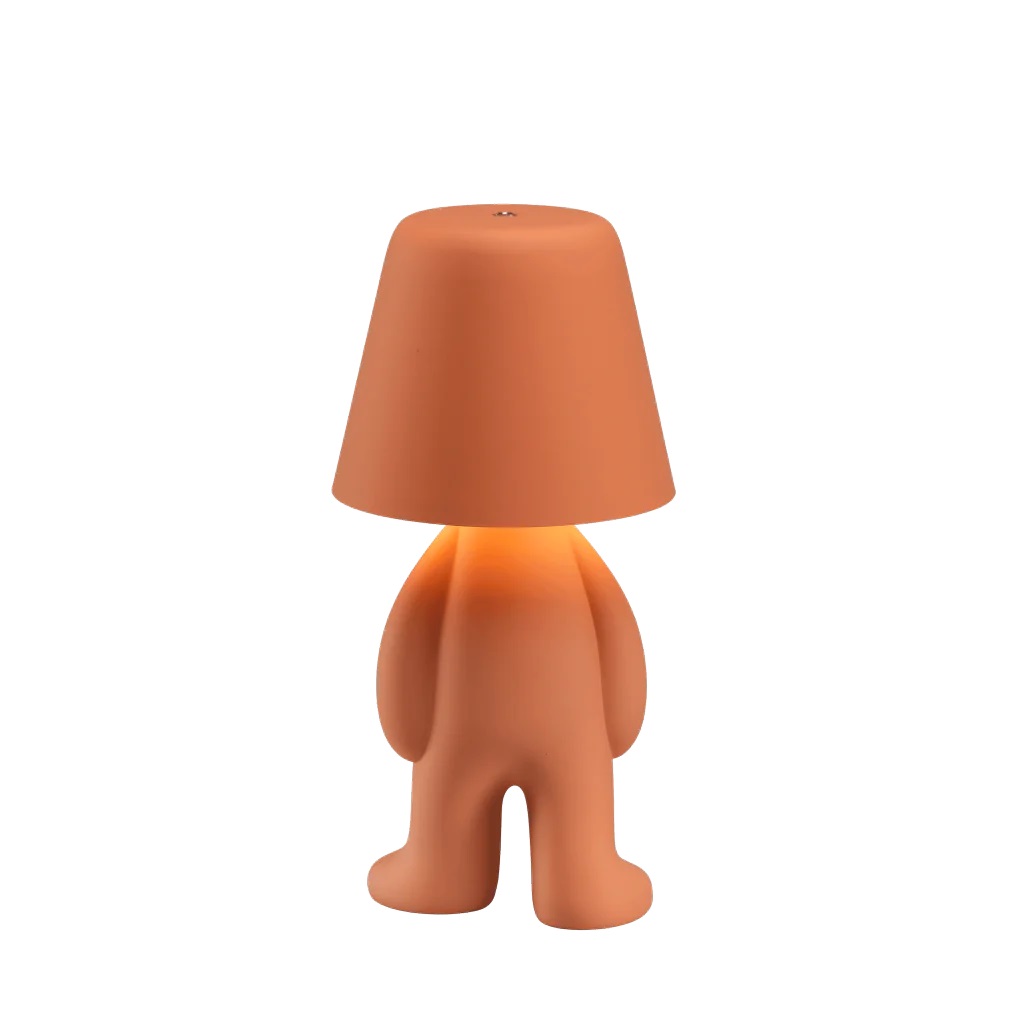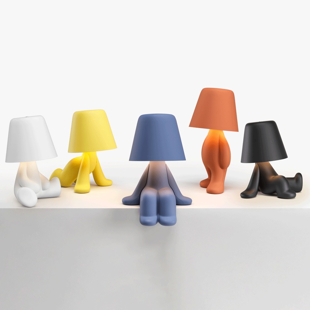 Designed by Stefano Giovannoni, the Golden Brothers are a family of lamp-characters which, reflecting a soft light on their body, enhance the plasticity and fluidity of their silhouette. Qeeboo now introduces the Sweet Brothers, 5 new brothers in different soft touch colours. Find them in black, white, light blue, yellow and terracotta, assuming different postures, they create an animated landscape characterizing the table and every corner of the house. This family of rechargeable battery-operated LED lamps is equipped with a soft touch switch.