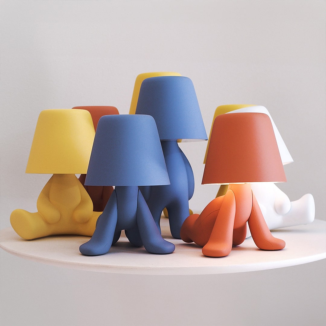 Designed by Stefano Giovannoni, the Golden Brothers are a family of lamp-characters which, reflecting a soft light on their body, enhance the plasticity and fluidity of their silhouette. Qeeboo now introduces the Sweet Brothers, 5 new brothers in different soft touch colours. Find them in red, black, white, light blue, yellow and terracotta, assuming different postures, they create an animated landscape characterizing the table and every corner of the house.