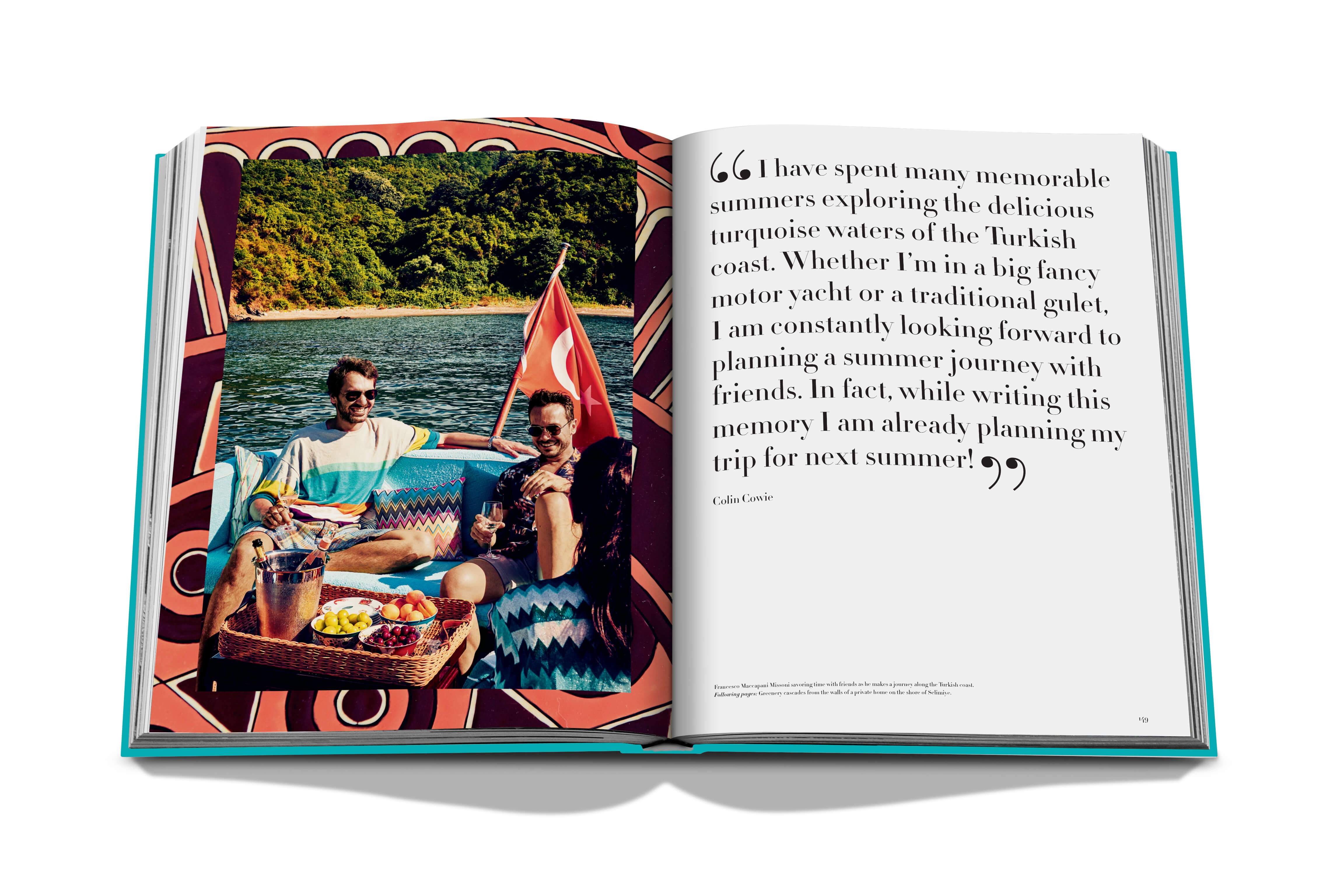 The Turkish Riviera, known as the Turquoise Coast, is home to stunning mountain scenery, rich myths, and folklore, and more than six hundred miles of impeccable shoreline along the warm Aegean and Mediterranean seas. Featuring two of the Seven Wonders of the Ancient World, the ruins of the Mausoleum of Maussollos and the Temple of Artemis, this stretch of coast is a destination apart, so much so that Mark Antony was said to have chosen it as the most spectacular wedding gift for Cleopatra. Through the lens of Oliver Pilcher, this blue voyage beckons readers with wanderlust to set sail and enjoy the dazzling sapphire shades of the coast’s dreamy yacht life. Anecdotes from lovers of the region include Mica Ertegun, Tommy Hilfiger, Chiara Ferragni, and Mert Alas, who spent summers boating on these storied waters.
