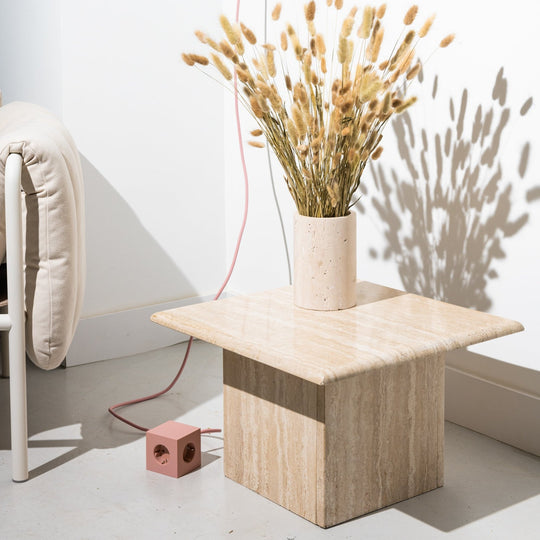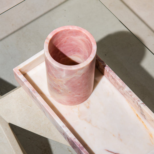 Each piece is unique and one of a kind. It is made out of natural stone, so differences in marble patterns and colourations may occur. Items are often finished by hand which can result in small differences in size and finishing. Also, natural imperfections like small cracks and holes may be present. Only clean it with water and a mild detergent. Don’t let any liquid get the chance to soak in and be aware that acidic and strong pigmented products can leave a mark.