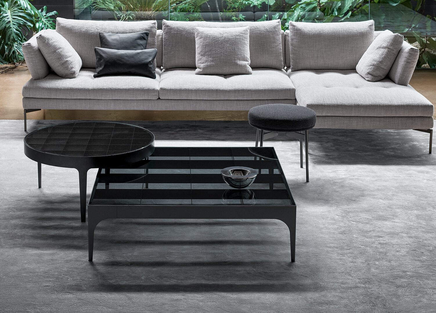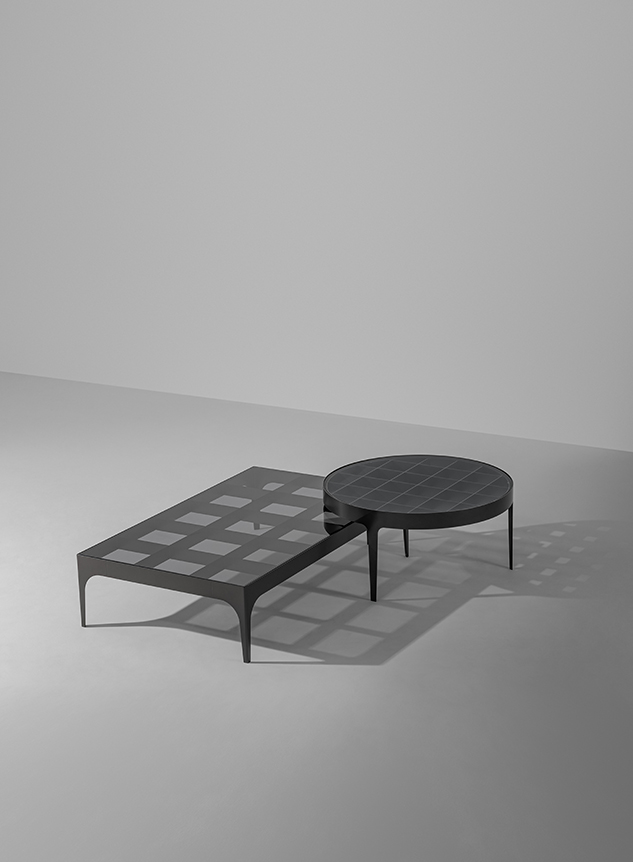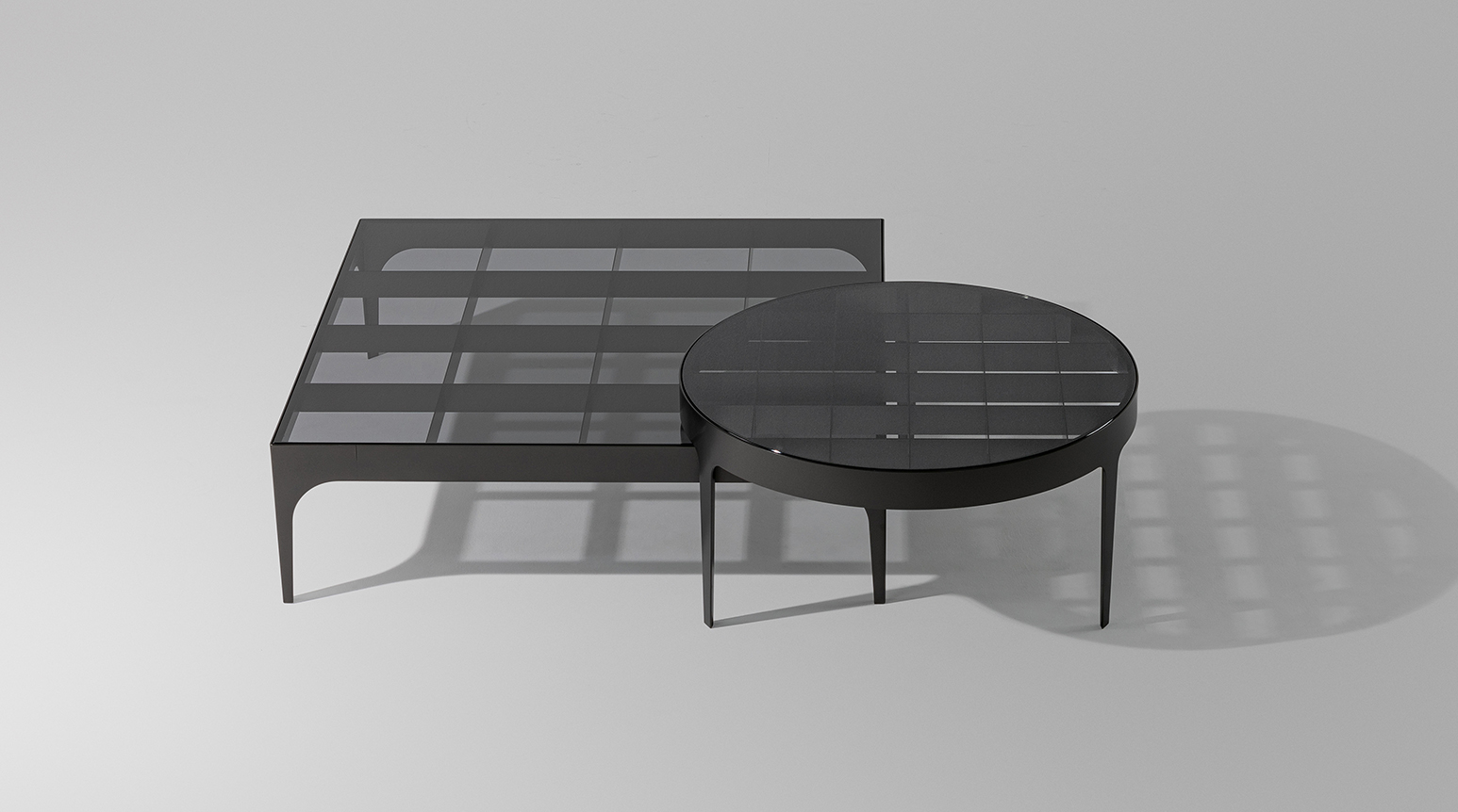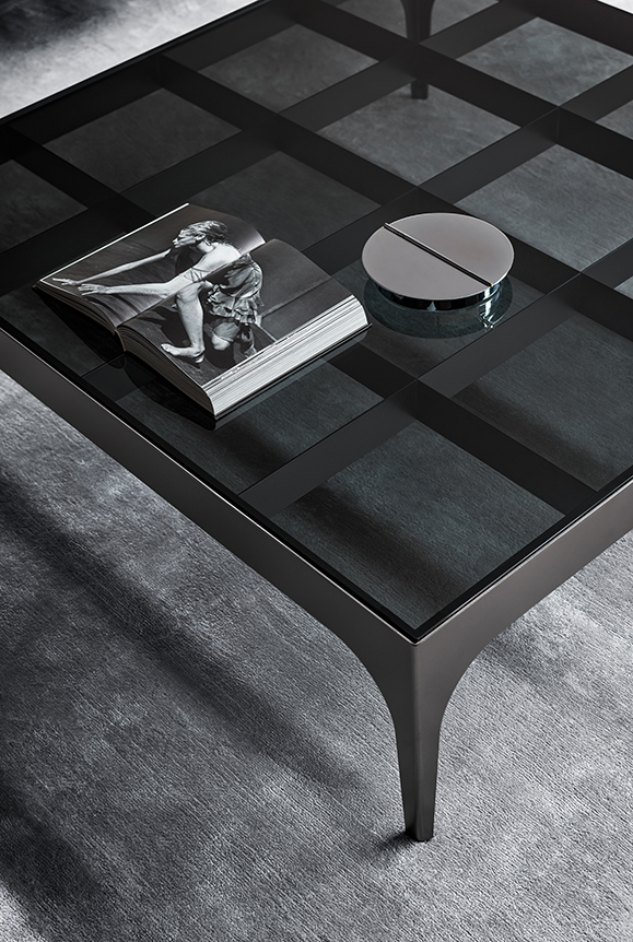 The style of the coffee tables designed by Fabrice Berrux sums up a discreet elegance that is both structural and functional at the same time while drawing attention to a number of sophisticated details, most noticeably, the metal "chessboard” structure that can be glimpsed under the glass top. The coffee table is available in different formats including square, rectangular and circular, which allow you to create countless furnishing solutions and combinations.