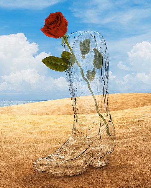 To findings and urban fairy tales are essence of this vase that decontextualize a western boot and turns it into a flowerpot.
