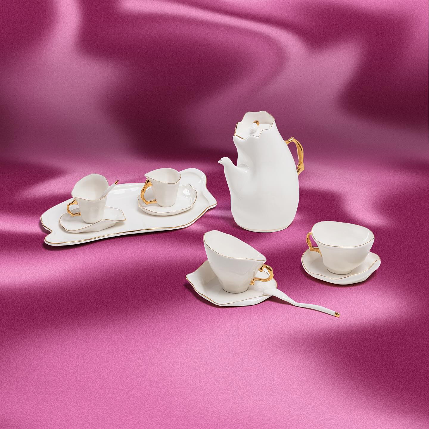 Price is for the set of 2 coffee cups, 2 saucers and 2 spoons.