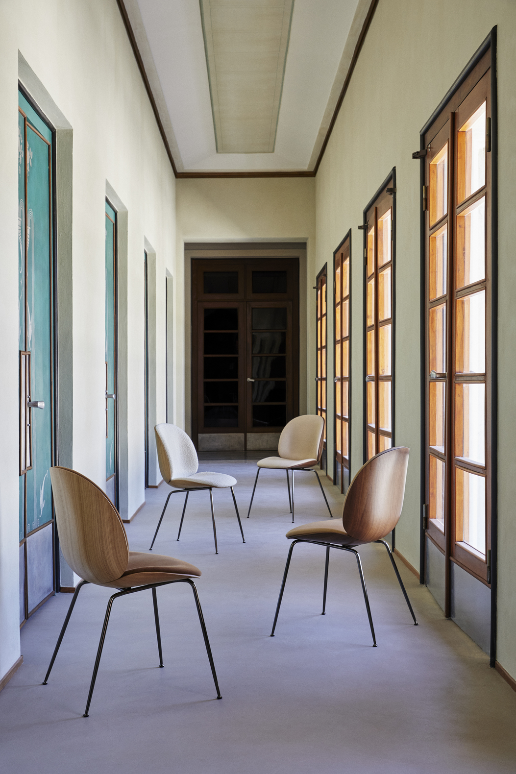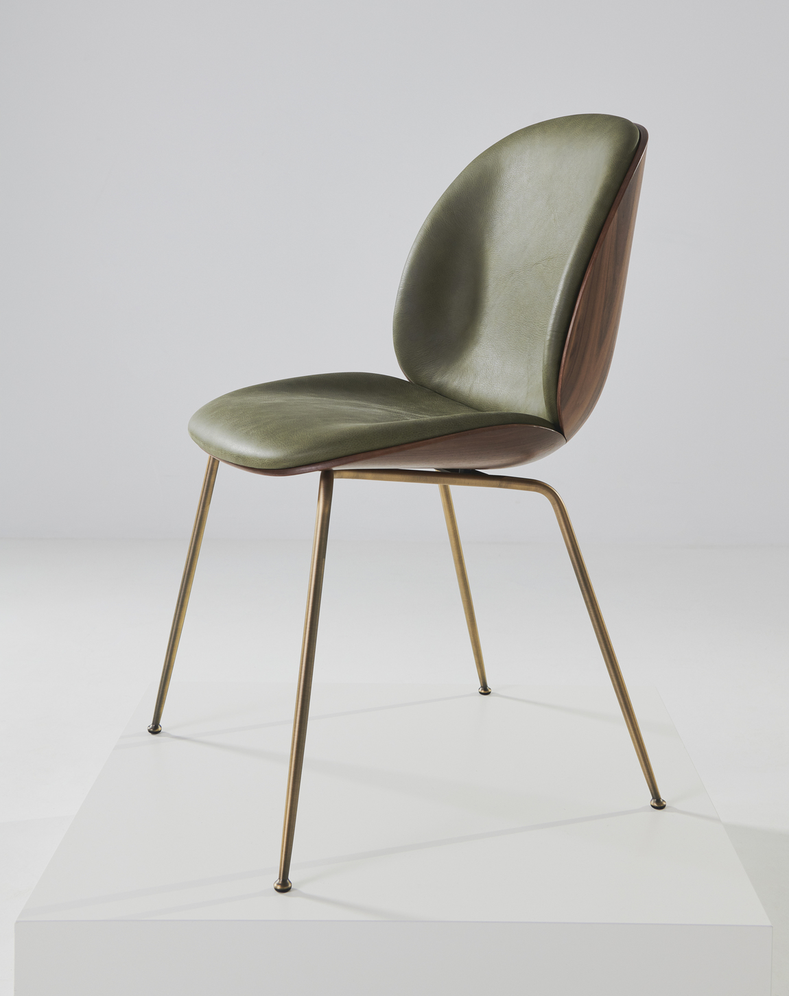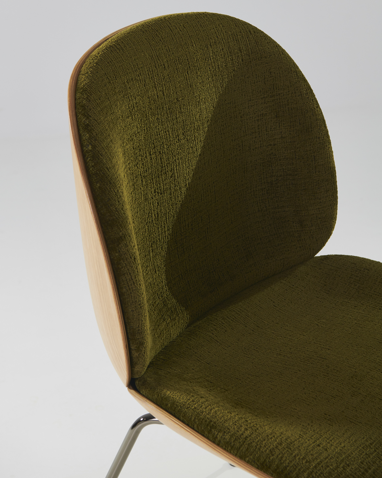 The front upholstered Beetle chair with a 3D molded veneer shell takes the natural inspiration of the Beetle collection to the next level. Originally designed by GamFratesi 2013, the Beetle collection has been embraced by design lovers the world over for its exceptional comfort, striking silhouette, and quality construction. This latest iteration, featuring oak and American walnut wood veneer, brings versatility and an even more sophisticated expression to the collection.