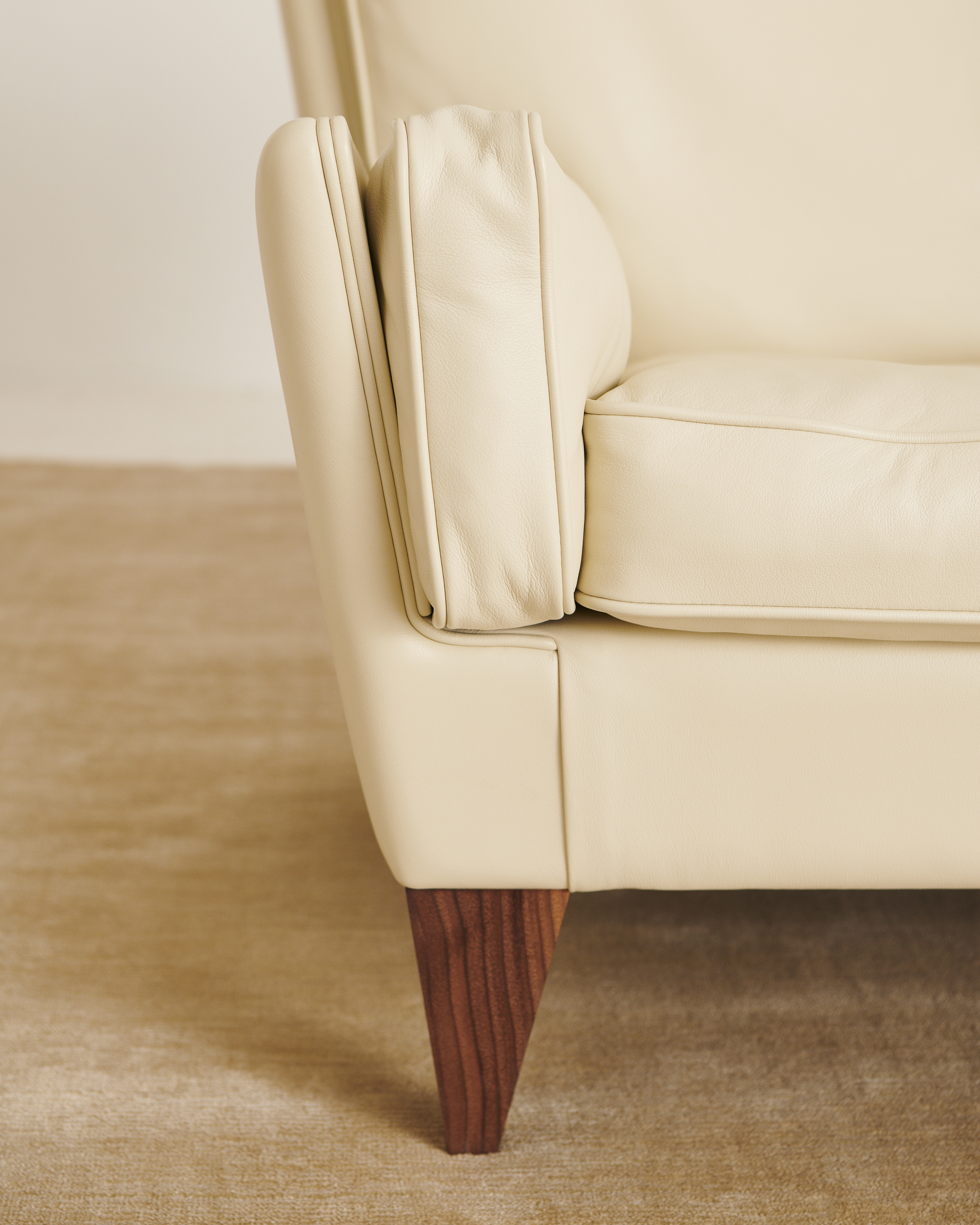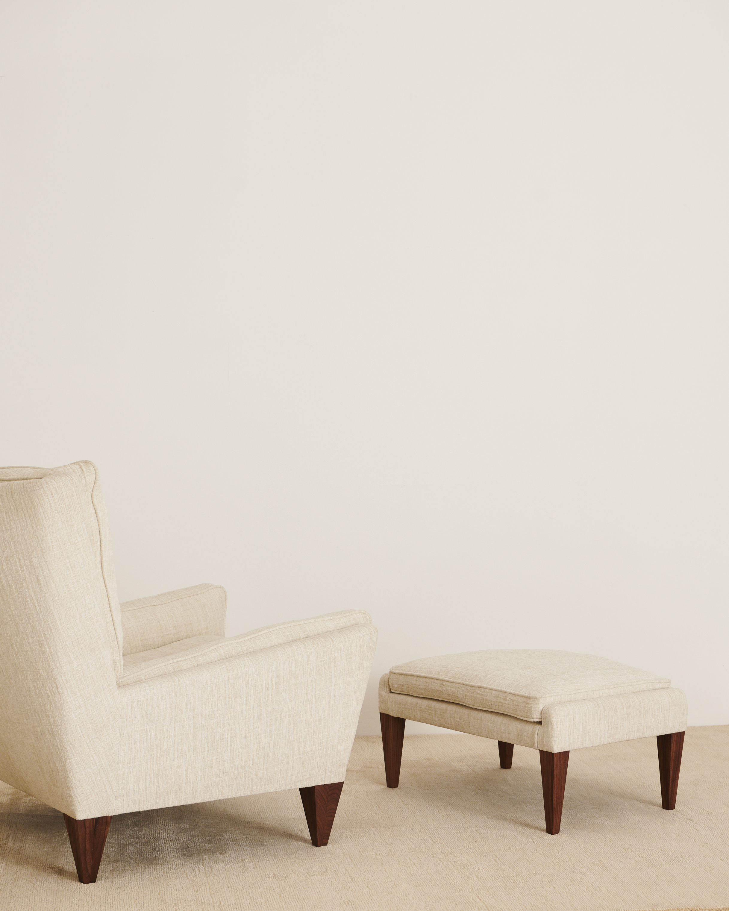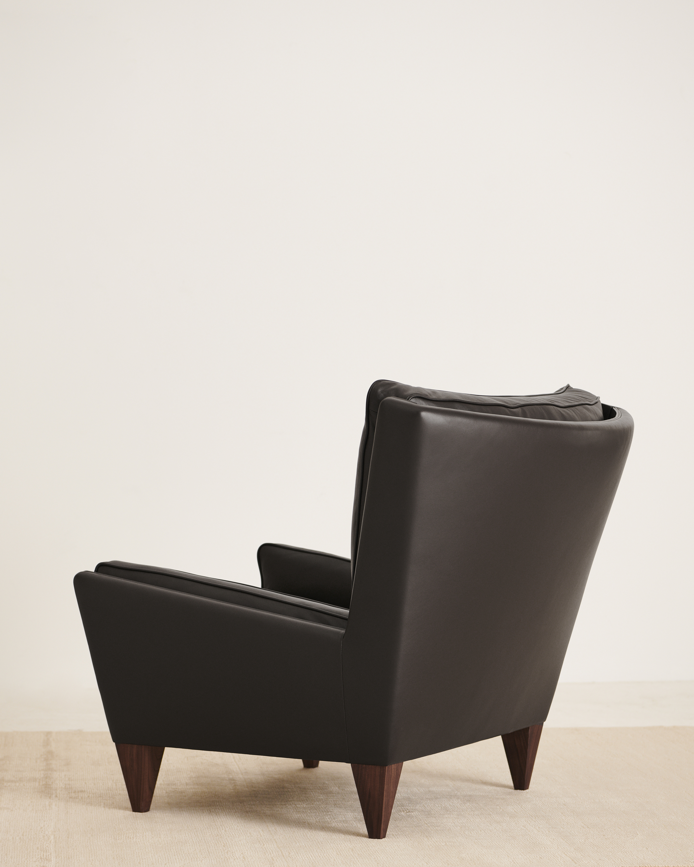 First designed in 1965, the V11 Lounge Chair is one of the most revered and highly sought-after seating designs by the leading 20th-century Danish designer Illum Wikkelsø. Like GUBI’s other Wikkelsø design, the V11 is exemplary in craftsmanship and distinctive in form, with an angular trapezoidal body echoed in its signature inverted- pyramid legs in solid wood. Despite these seemingly sharp angles, the V11 is crafted for comfort, exemplifying Wikkelsø’s belief that chairs should accommodate a variety of seating positions. Painstakingly recreated by GUBI using a process of 3D scanning, the V11 family includes a lounge chair and accompanying ottoman, both FSC® certified (FSC®-C176589).