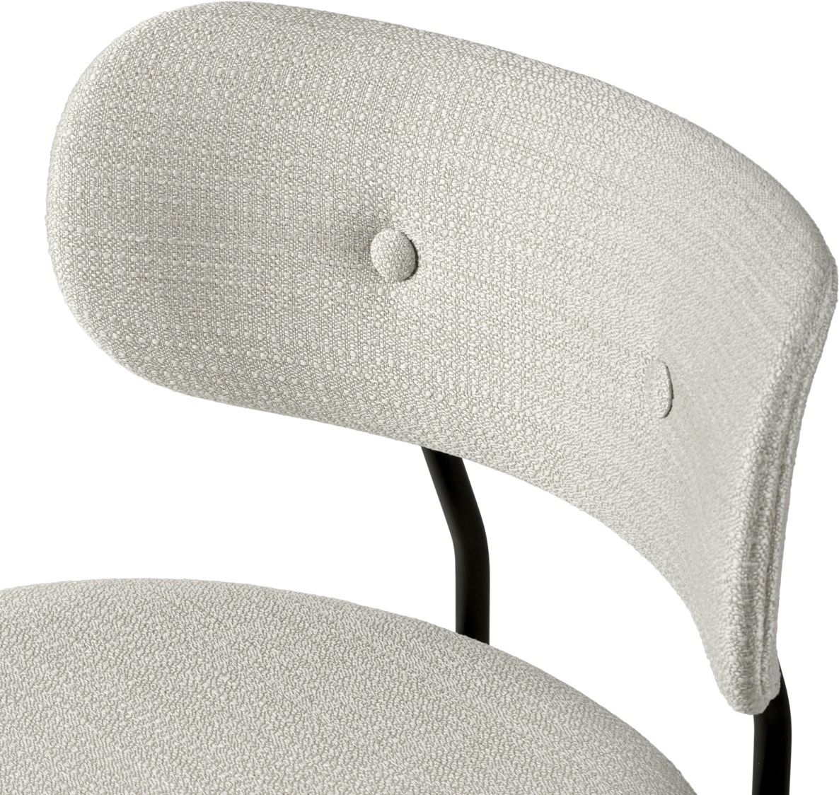 Available upon order in two height dimensions, with backrest and seat upholstered in a wide range of fabrics and metal frame in black matt finish.