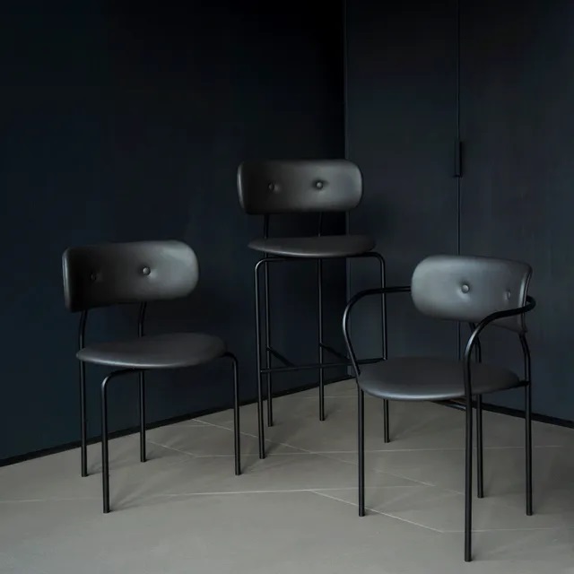 The Coco Bar Chair is part of the Coco Collection, designed by OEO Studio with focus on charismatic signature design that offers a high level of comfort. The chair borrows references to the industrial simplicity, fashion and the Bauhaus, but the inspiration of the design comes from a desire to create a simple yet elegant chair. The result is a post-industrial look that is balanced by an elegant silhouette where the soft curves render a feminine and playful touch. The high level of comfort is, among other features, expressed in the backrests curvy shape that embraces and relieves the back of the one sitting in the chair.