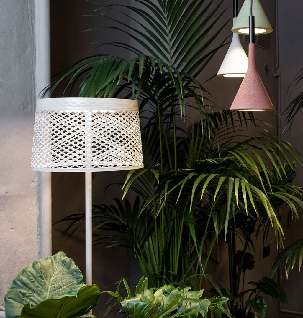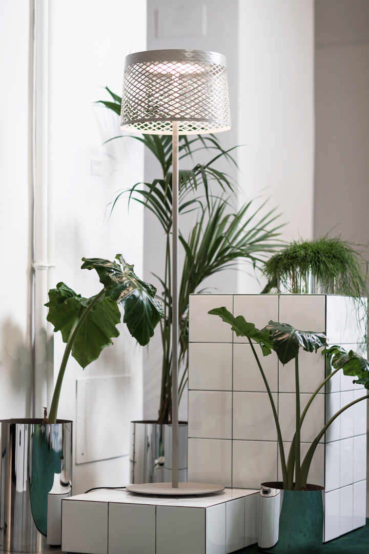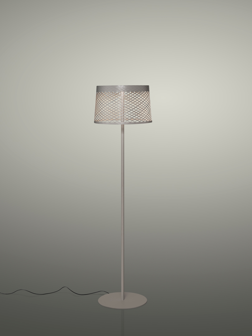 A formal concept of lightness, declined in a floor lamp with a thin stem and a characteristic woven diffuser. Twiggy Grid Reading is perfect for outdoor and indoor use.