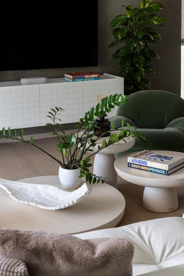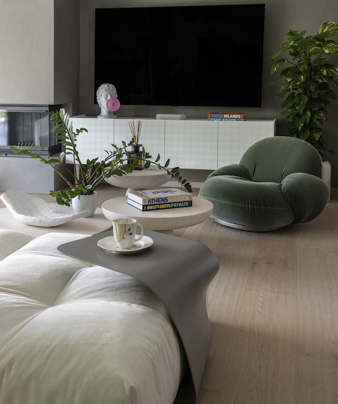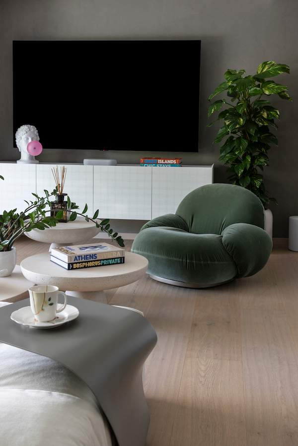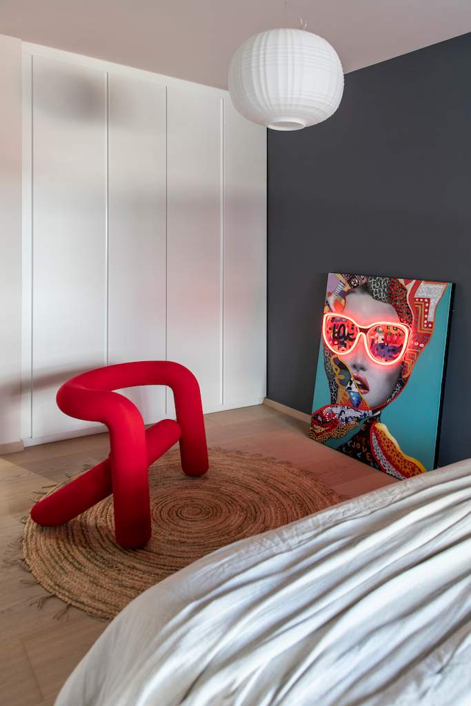 We were inspired from the start towards using an earthly palette of colours and materials with non intrusive forms and smooth, almost ritualistic shapes. Pop-art came to add the finishing splashes of colour with the vivid red Bold armchair and touches of Neon.