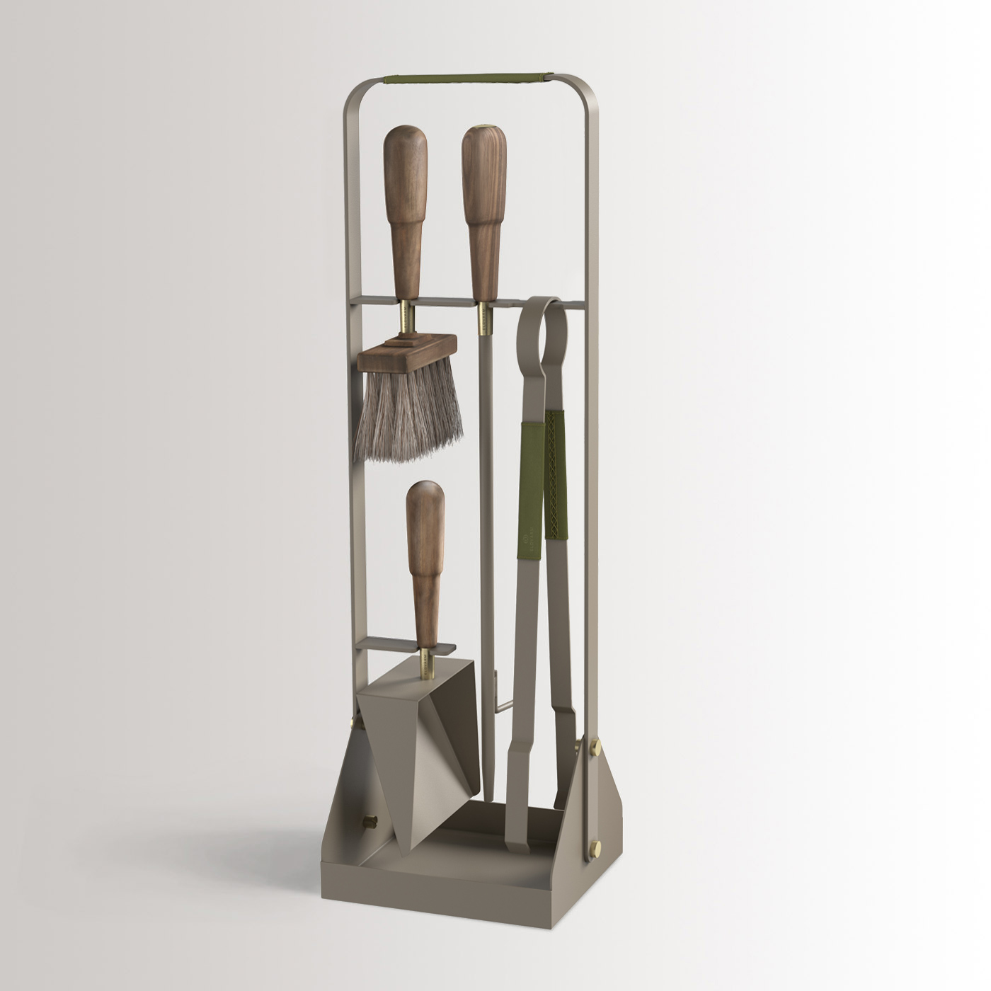 Το απόλυτο στυλάτο σετ εργαλείων για το τζάκι από την εταιρεία Eldvarm. Διαθέτει τα κλασικά εργαλεία που είναι απαραίτητα για το τζάκι καθώς και ένα φυσητήρα/κοντάρι που βοηθάει αρχικά στο άναμα της φωτιάς και ύστερα ρυθμίζει/μετακινεί τα ξύλα. Όλα αυτα στηρίζονται στην μεταλλική βάση τους η οποία, όπως και τα εργαλεία, είναι φτιαγμένη από ατσάλι και ηλεκτροστατική βαφή ειδική για υψηλές θερμοκρασίες και αντοχή. Τέλος για ολοκληρωμένη στυλάτη εμφάνιση τα εργαλεία διαθέτουν λεπτομέρειες σε οργανικό δέρμα και συμπαγή ορείχαλκο, με χειρολαβές σε ξύλο αμερικάνικης καρυδιάς και οξιάς.
