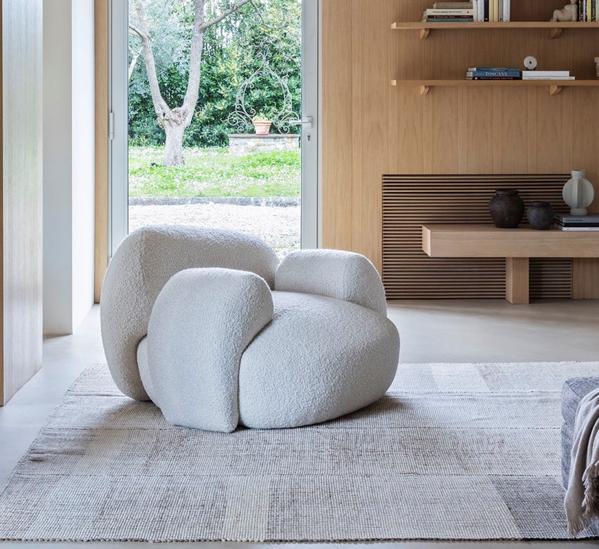 Η Mochi είναι μια φιλόξενη πολυθρόνα με ασύμμετρο και extravagant σχεδιασμό. Με τα απαλά και ογκώδη σχήματά της, σας προσκαλεί να νιώσετε την απόλυτη χαλάρωση. Χάρη στα υλικά και τα υφάσματα υψηλής απόδοσης, το σχήμα, η λειτουργικότητα και η άνεση της ανταποκρίνονται πλήρως στις ανάγκες του σύγχρονου τρόπου ζωής.