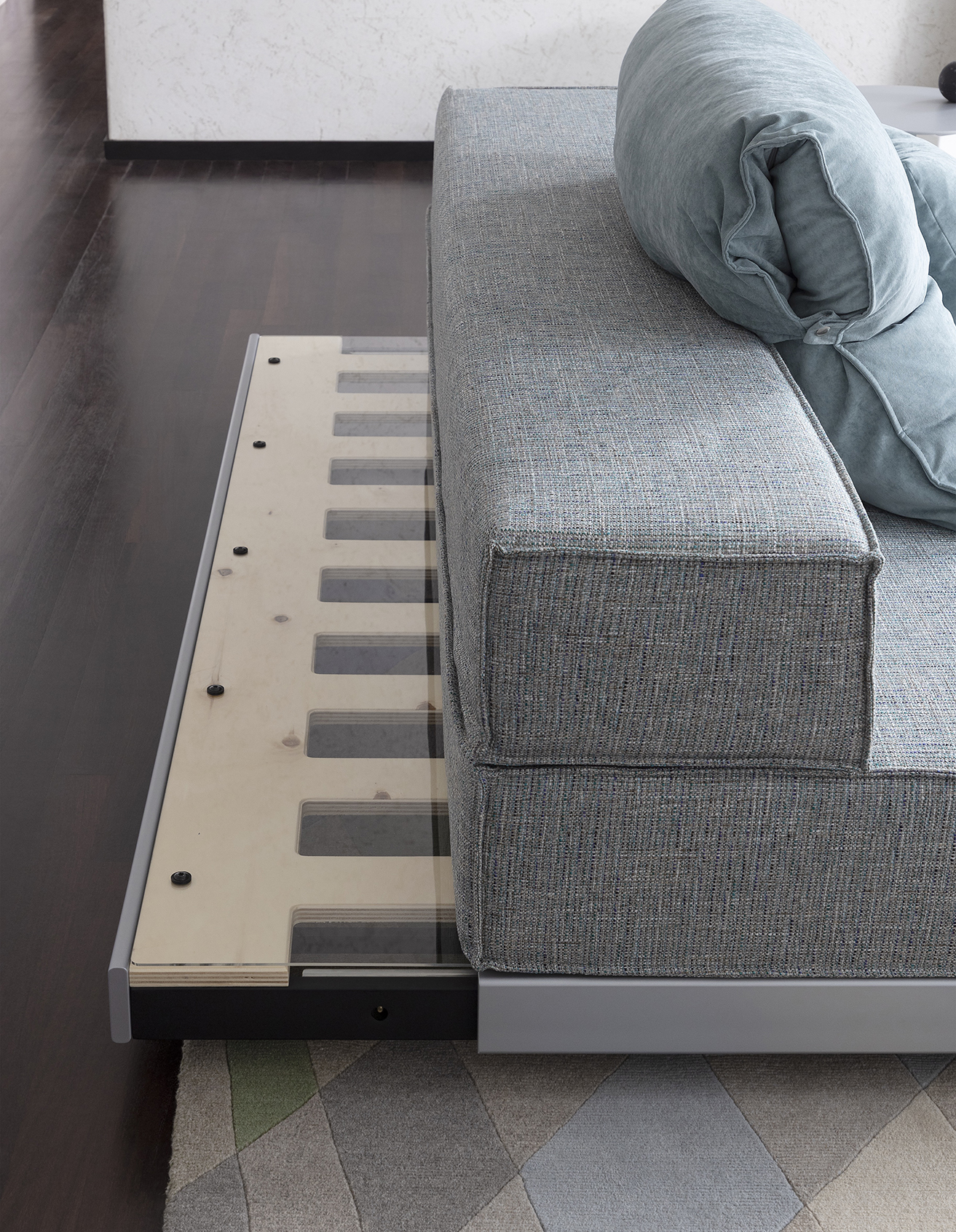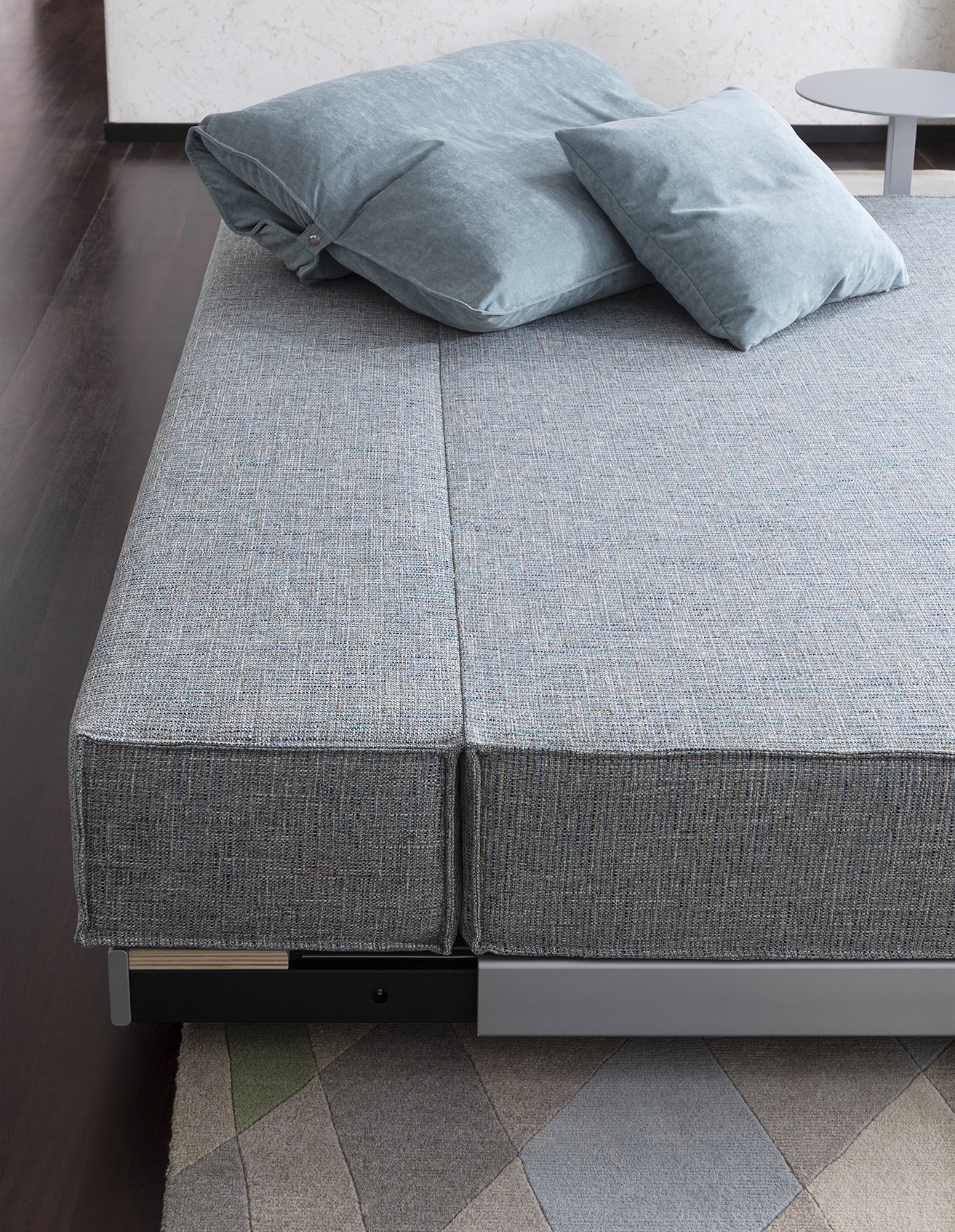 Ο Bed & Breakfast είναι ένας καναπές-κρεβάτι με χειροκίνητο μηχανισμό που επιτρέπει στην πλάτη του καθίσματος να αντιστραφεί και να μετατραπεί σε ένα άνετο κρεβάτι με μια απλή κίνηση. Ο καναπές-κρεβάτι είναι εύκολο να ανοίξει λόγω της παρουσίας ενός μικρού ιμάντα κάτω από τη βάση και την ιδιαίτερη δομή με οριζόντια ολίσθηση μέσω ενός οδοντωτού μηχανισμού. Αποτελείται από 4 στοιχεία: τον καναπέ-διπλό κρεβάτι την ξαπλωτή πολυθρόνα - μονό κρεβάτι και από την πολυθρόνα Πουφ (σταθερό στοιχείο). Τα μαξιλάρια υποστήριξης μπορούν να χρησιμοποιηθούν και ως μικρό πάπλωμα ξεκουμπώνοντας τα δύο κομψά ξύλινα κουμπιά και ως υποστήριξη της πλάτης διπλωμένα και κουμπωμένα. Τα καλύμματα είναι πλήρως αφαιρούμενα.