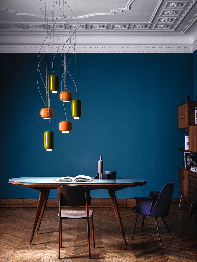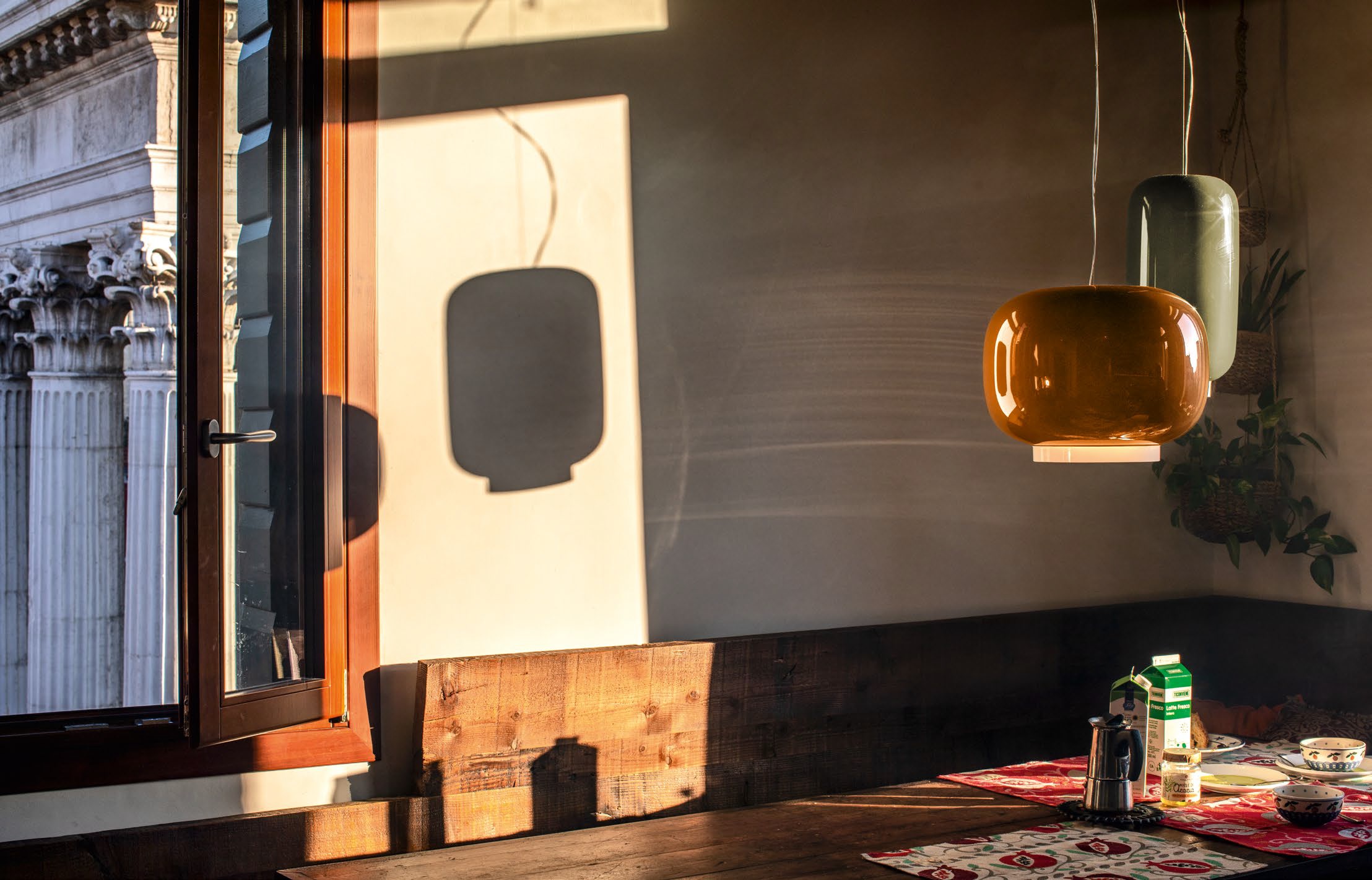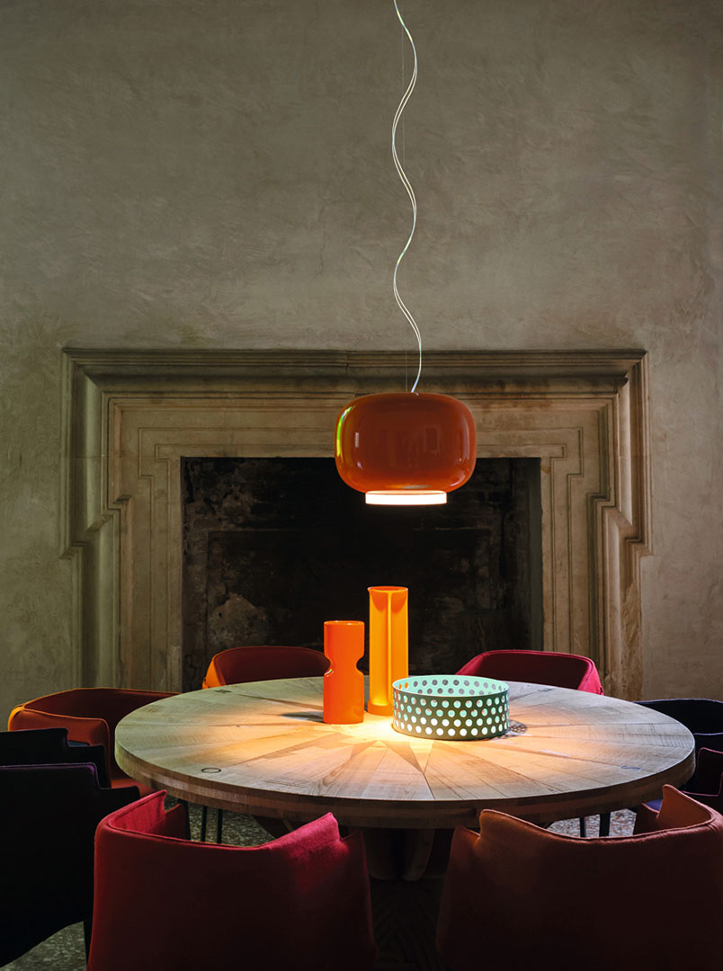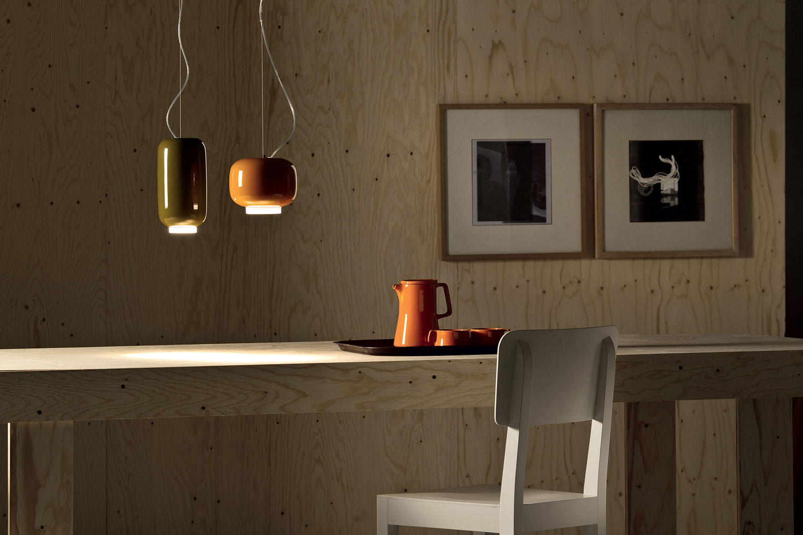 Μια συλλογή φωτιστικών που παίζουν με την οπτική αντίθεση μεταξύ του χρωματιστού και του λευκού φυσητού γυαλιού, σε διαφορετικά σχήματα και χρώματα, το μοντέρνο και καθαρό στύλ τους τα καθιστούν ιδανικά για όλους τους χώρους.