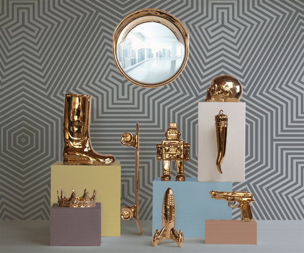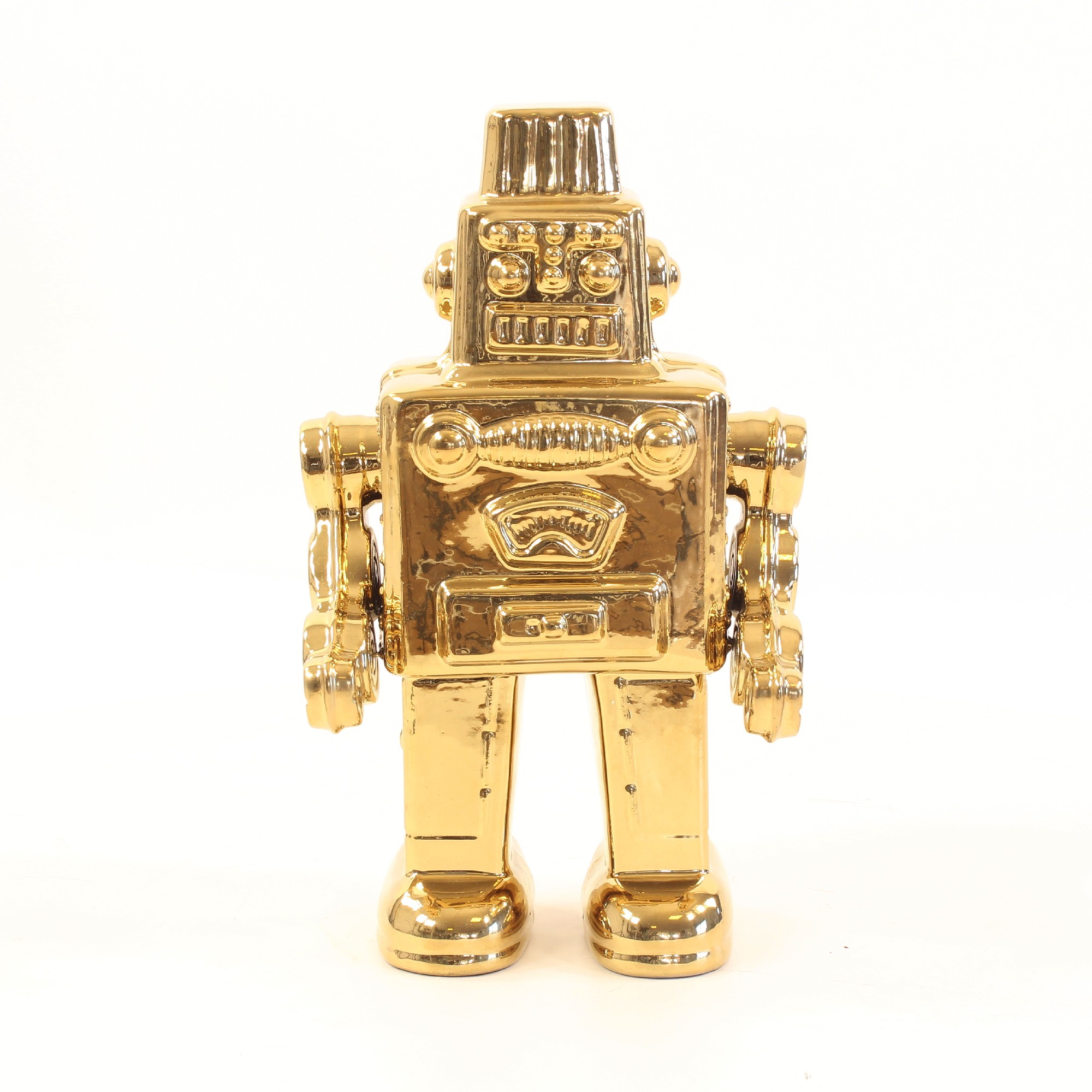 Το ρομποτάκι είναι φτιαγμένο από πορσελάνη και καλύπτεται με χρυσό σμάλτο με μία δυνατή δόση παιδικότητας και ξεγνοιασιάς!