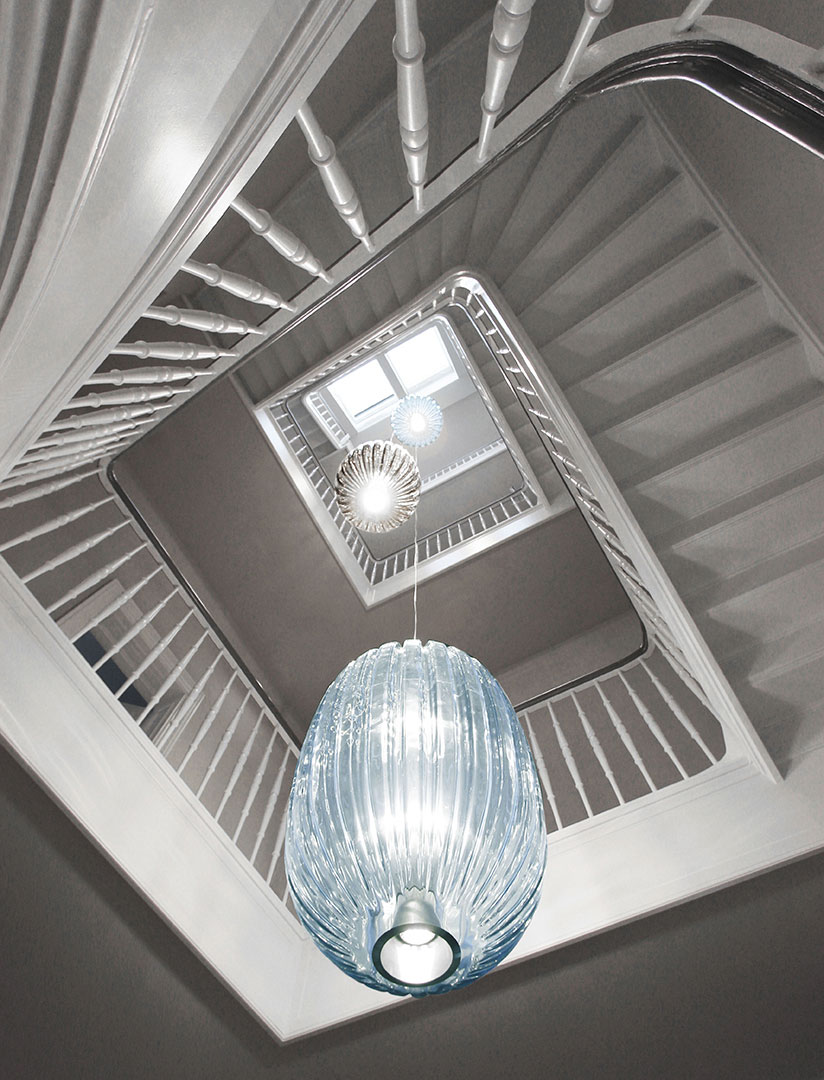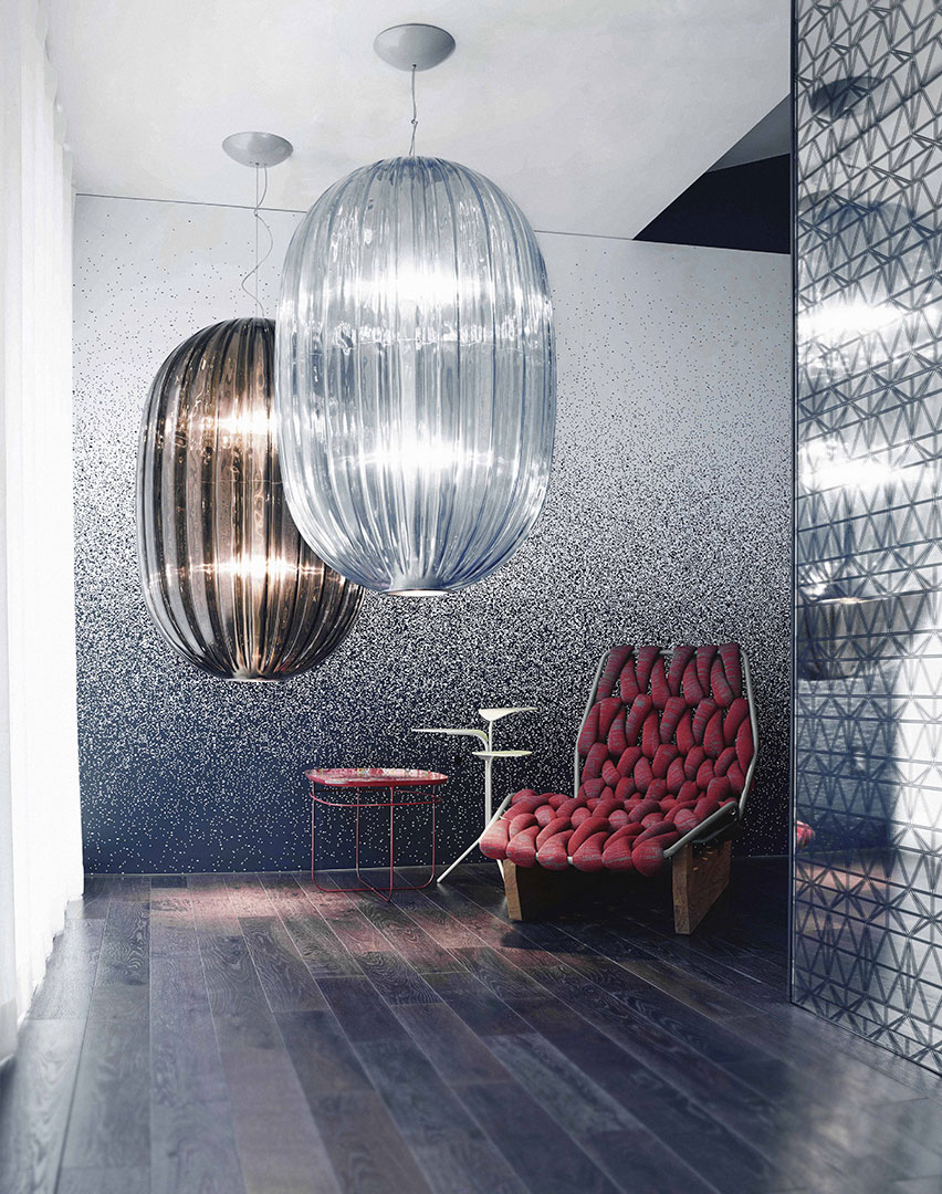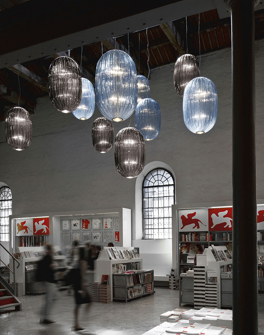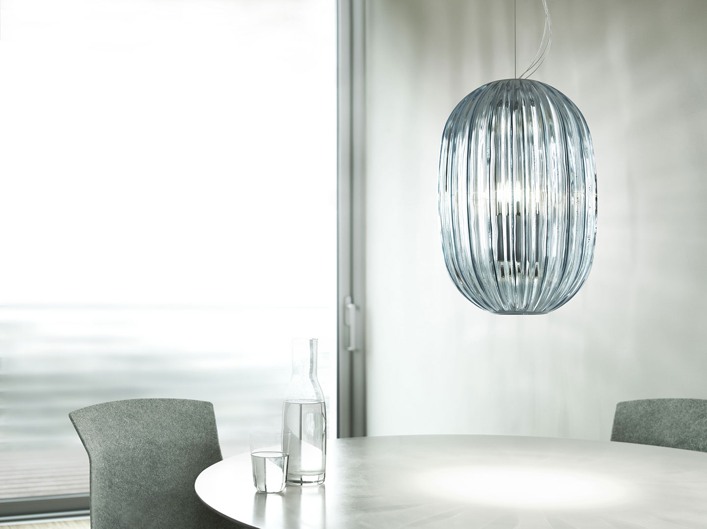 Το Plass μεταφέρει τη γοητεία των παραδοσιακών βενετσιάνικων γυάλινων μαργαριταριών σε μεγαλύτερη κλίμακα, αντλώντας επίσης την έμπνευσή του τόσο για το σχήμα όσο και για τα χρώματα. Ένα φωτιστικό οροφής με επιφάνεια που διαχέει το εσωτερικό φώς με μοναδικό τρόπο.
