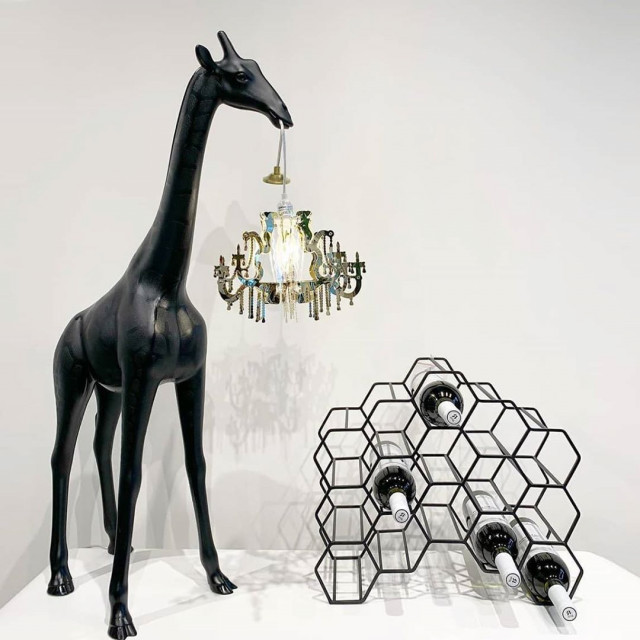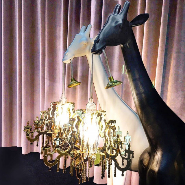 Ο σχεδιαστής Marcantonio σε συνεργασία με την Qeeboo δημιούργησαν την ερωτευμένη καμηλοπάρδαλη. Διακοσμητικό και φωτιστικό ταυτόχρονα, κρατάει έναν κλασικό πολυέλαιο σε στιλ Maria Therese. Θα σας κάνει να την ερωτευτείτε με την πρώτη ματιά. Διαθέσιμη σε διάφορα χρώματα μπορεί να τοποθετηθεί σε οποιαδήποτε γωνιά του σπιτιού, του ξενοδοχείου ή του επαγγελματικού σας χώρου για να δημιουργήσει ένα εντυπωσιακό αποτέλεσμα.