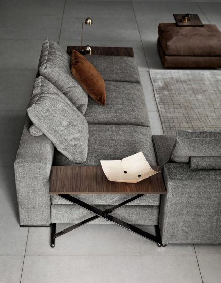 Γεννημένο ως συμπληρωματικό στοιχείο της ομώνυμης συλλογής, το Ananta Class Table είναι ένα χαμηλό βοηθητικό τραπεζάκι διαθέσιμο σε δύο μεγέθη. Το μαύρο πλαίσιο χρωμίου συγκρατεί την επιφάνεια που διατίθεται είτε σε καπλαμά καρυδιάς είτε σε δέρμα.