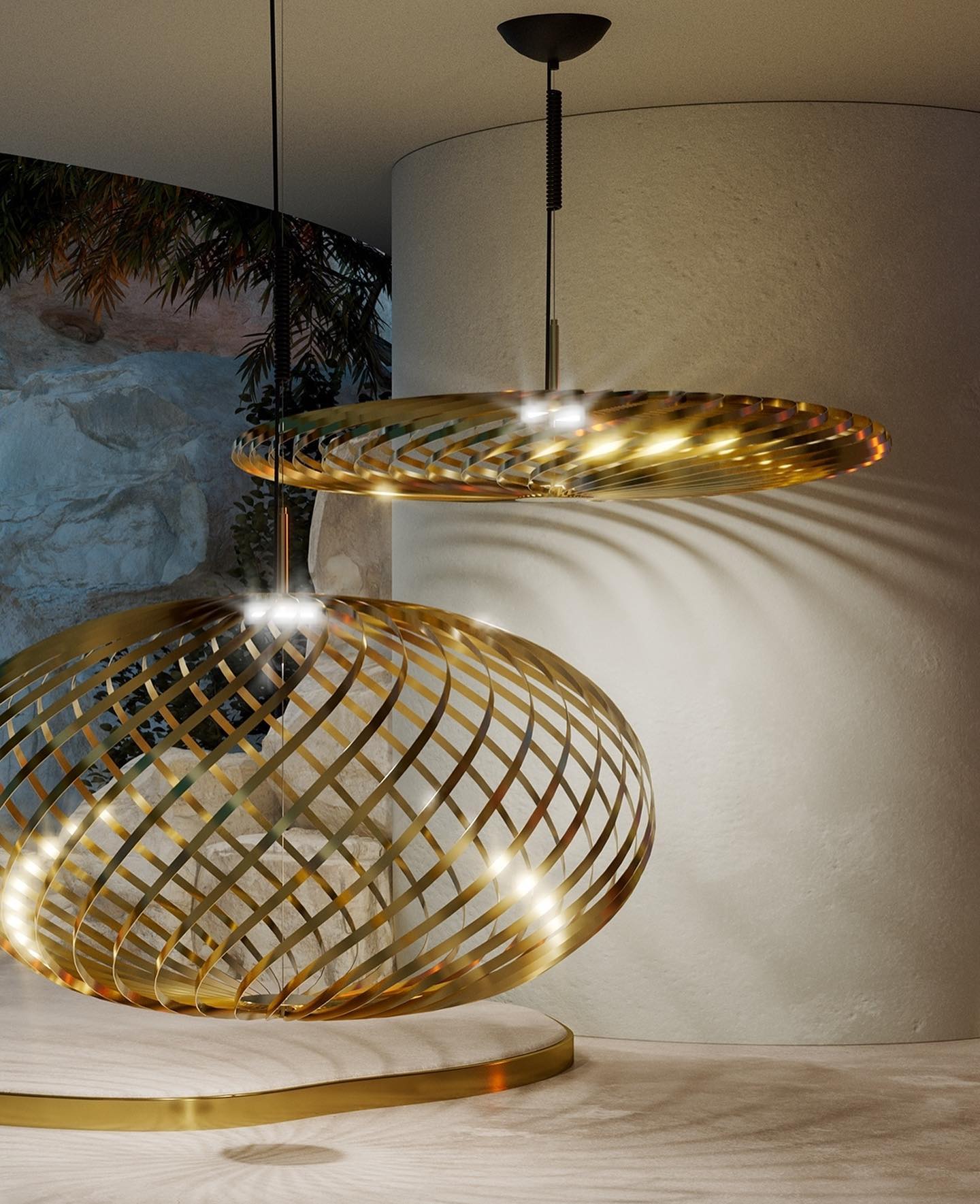 Η σειρά Spring αποτελείται απο τρία κρεμαστά φωτιστικά κατασκευασμένα εξ'ολοκλήρου απο ανοξείδωτο ατσάλι. Αποτελούνται απο ατσάλινες λωρίδες οι οποίες περιστρέφονται σπυρωτά δημιουργώντας ένα εντυπωσιακό αποτέλεσμα. Αυτή η κατασκευή τους προσφέρει την δυνατότητα να αλλάζουν σιλουέτα με μια κίνηση και να δημιουργούν σκιές που διαχέονται στον χώρο σαν να σχεδιάστικαν από σπιρογράφο.