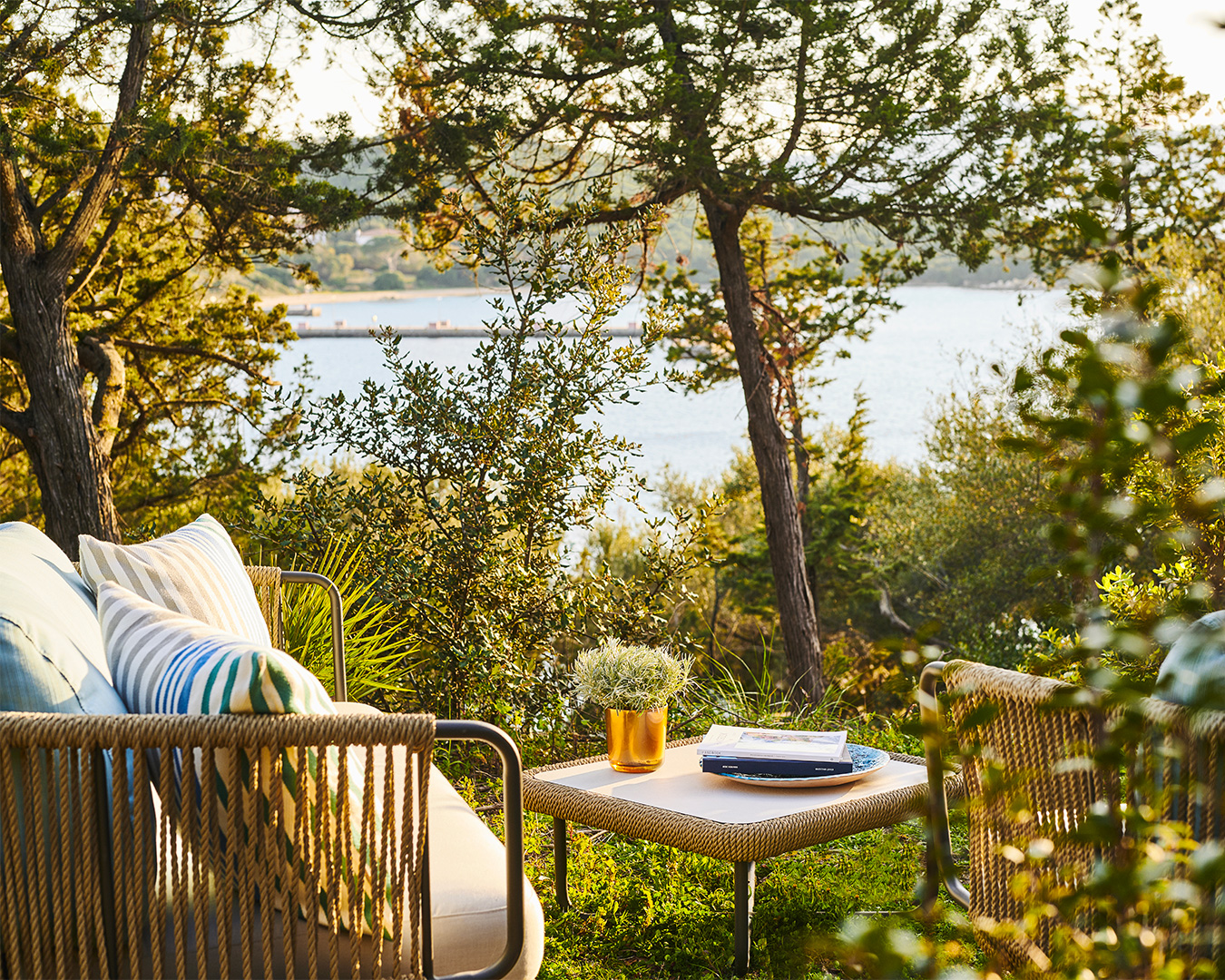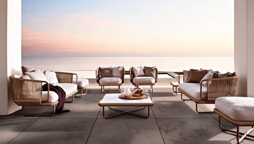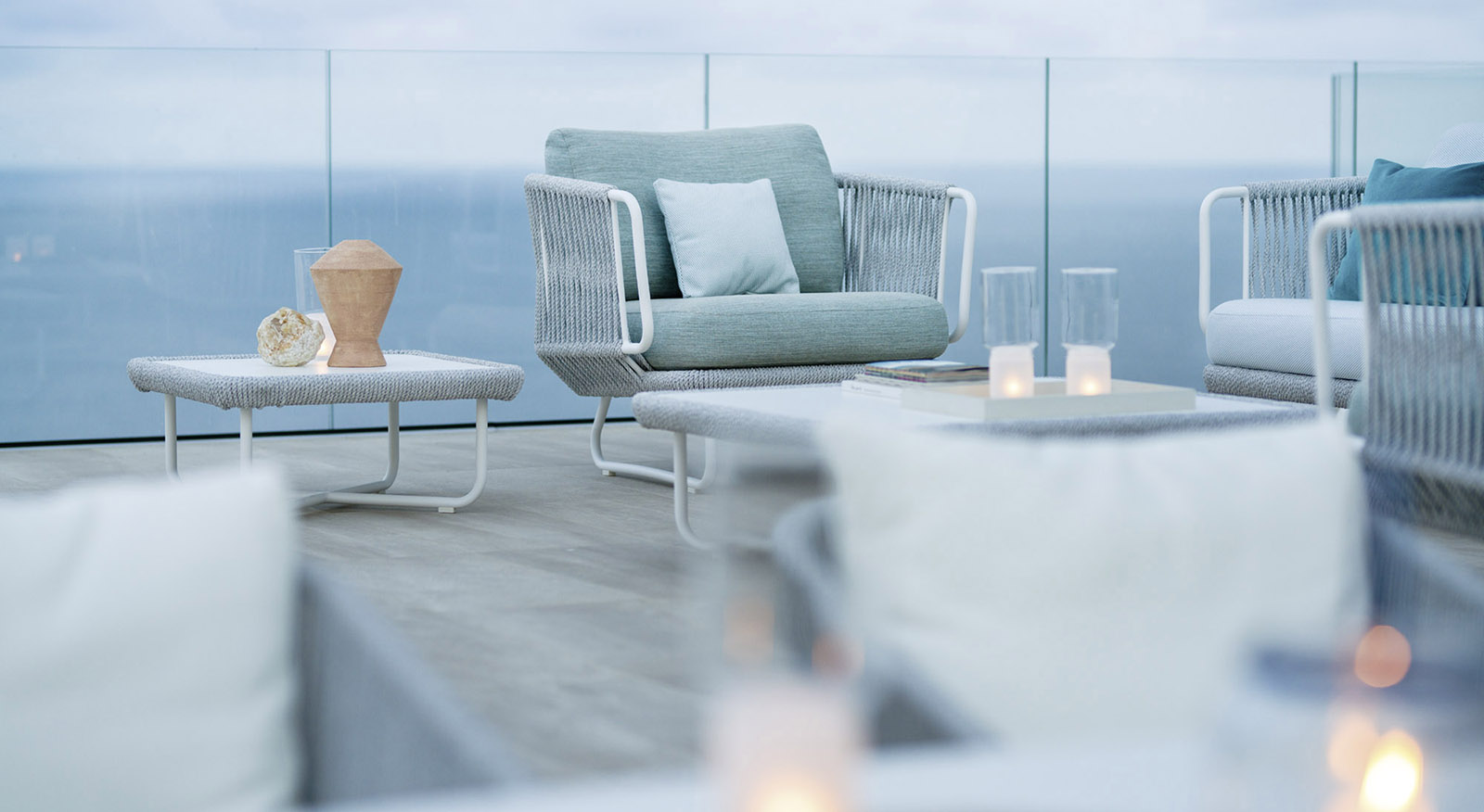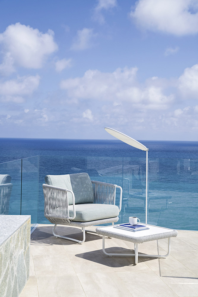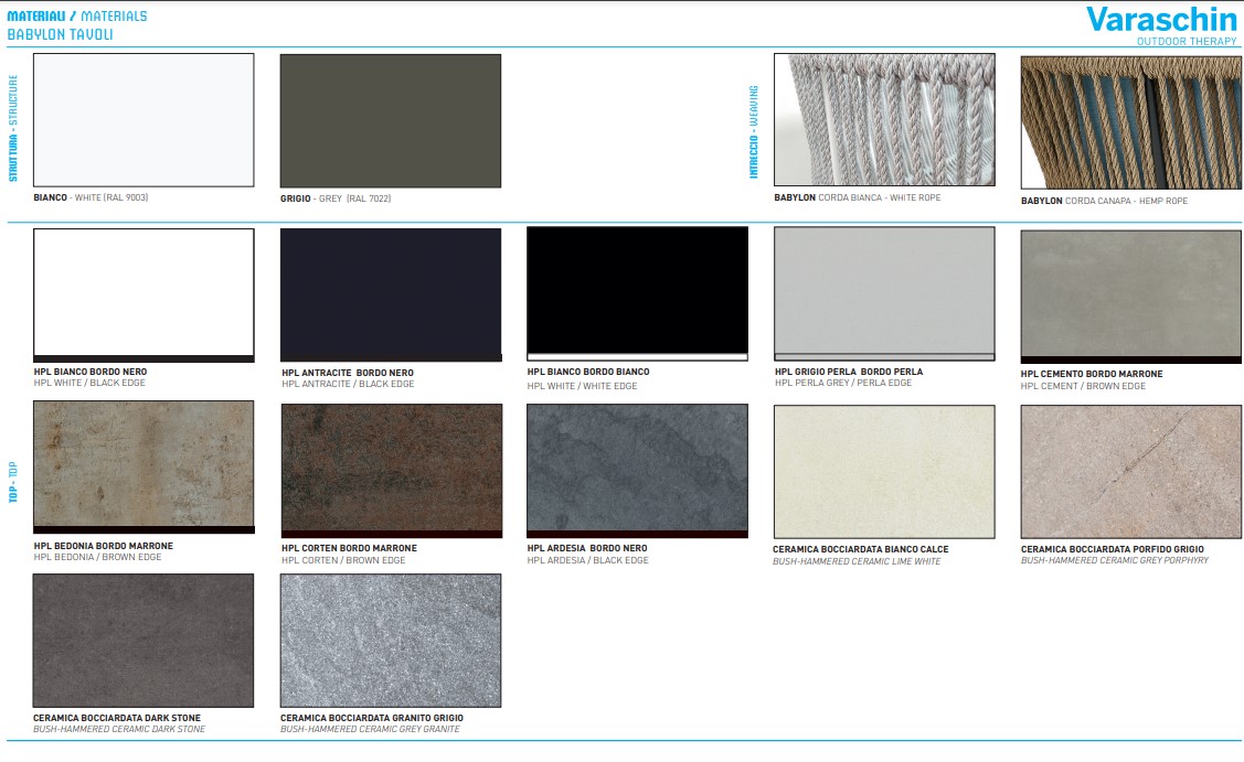 Το τραπεζάκι Babylon είναι ένα κομψό, με πλούσια προσωπικότητα, συμπλήρωμα. Η εκλεπτυσμένη ύφανση με σχοινί που αγκαλιάζει την περίμετρο της επιφάνειας, είναι μια πρωτότυπη λεπτομέρεια που επικαλείται το σχέδιο των καθισμάτων της ομώνυμης συλλογής. Στο ευρύχωρο επάνω μέρος, χωράνε όλα εκείνα τα αντικείμενα που κάνουν ευχάριστη την παραμονή μας στους εξωτερικούς χώρους, στην καθημερινότητα του σπιτιού ή στις διακοπές.