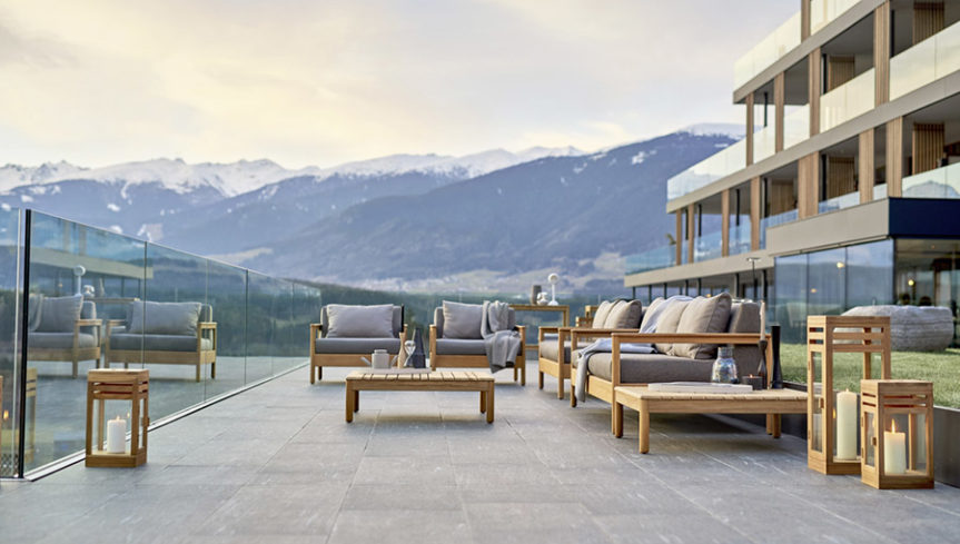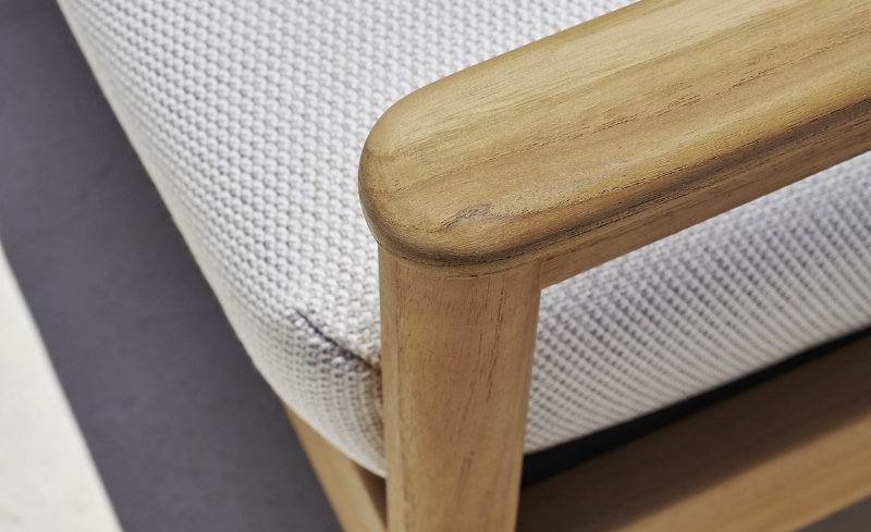 Υλικό: Σκελετός από μασίφ ξύλο teak, κάθισμα και πλάτη επενδεδυμένα με αφρό Dryfeel®.