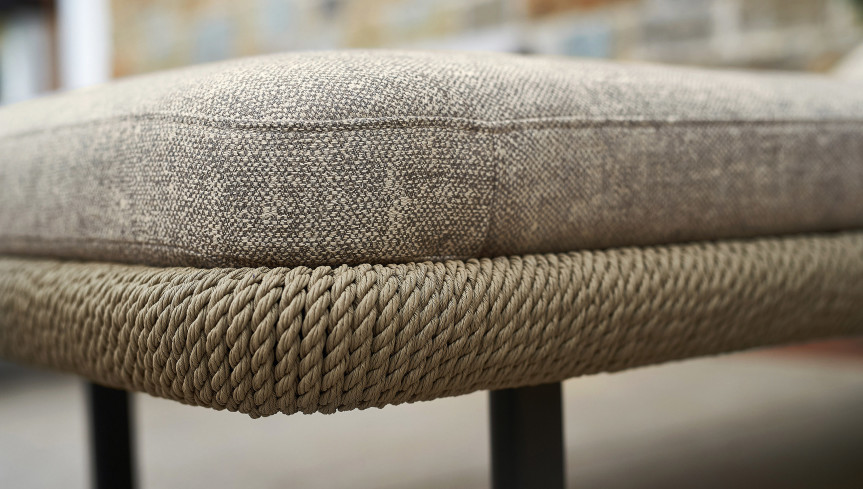 Διατίθεται κατόπιν παραγγελίας, με λευκό σκελετό και λευκό σχοινί ή με γκρί σκελετό και μπέζ σχοινί. Διαθέτει μαξιλάρι καθίσματος με αφαιρούμενο κάλυμμα, σε ποικιλία υφασμάτων εξωτερικού χώρου και ροδάκια.