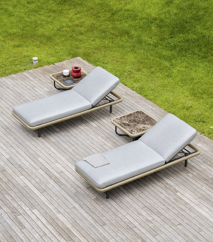 Η απαλότητα και η άνεση είναι οι λέξεις-κλειδιά για την ξαπλώστρα Babylon. Η επένδυση της πλάτης και του καθίσματος, είναι κατάλληλα για χρήση σε εξωτερικούς χώρους ακόμη και σε περιοχές κοντά σε θάλασσα. Έχει στρογγυλεμένα προφίλ που ακολουθούν την περίμετρο της δομής, γύρω από την οποία είναι υφασμένο ένα σχοινί από συνθετικές ίνες. Με τα διακριτικά του χρώματα εμπνευσμένα από τη φύση, το Babylon έρχεται σε αρμονία με το περιβάλλον, τόσο στον κήπο όσο και στη βεράντα, ή και δίπλα στην πισίνα.