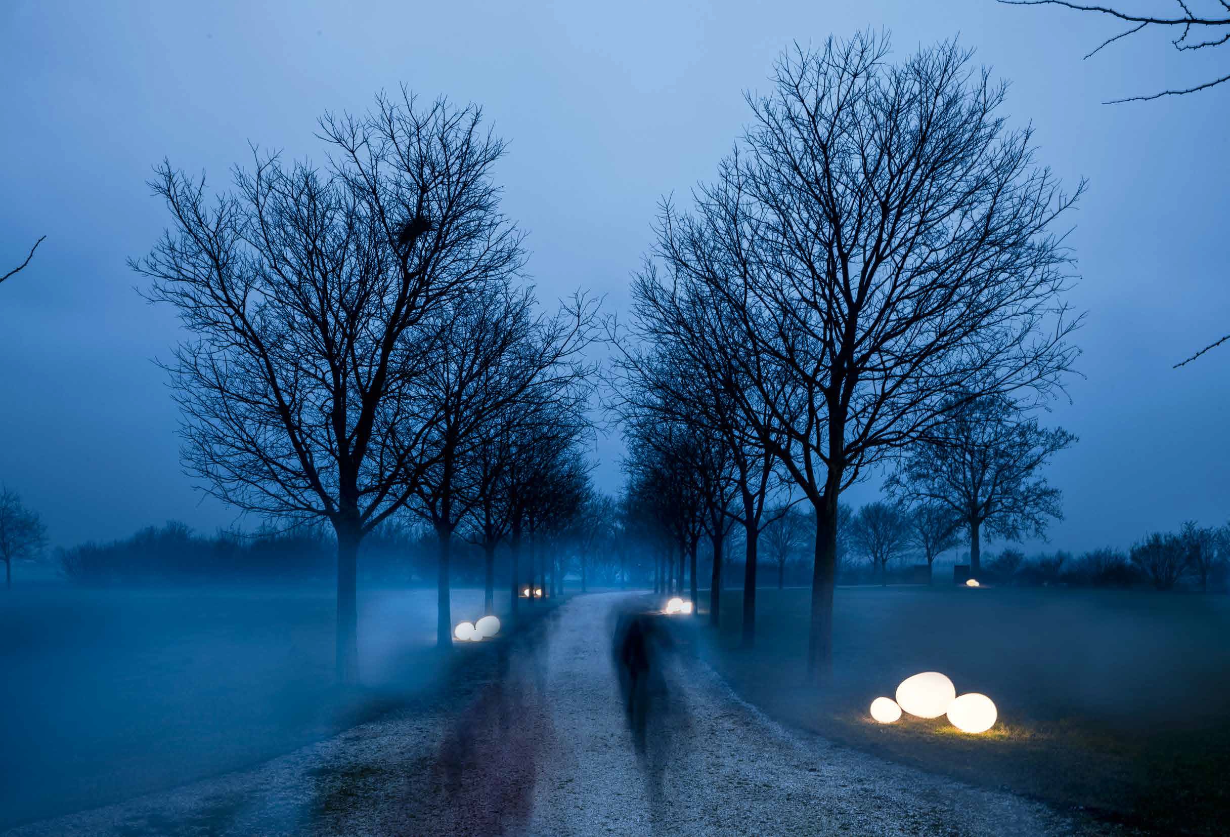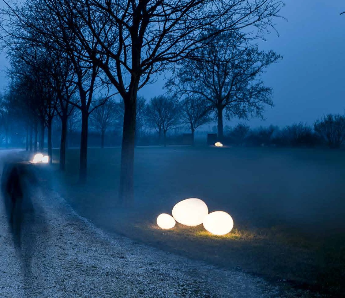 Το φωτιστικό Gregg με το υπέροχο οργανικό σχήμα που θυμίζει βότσαλο, σε outdoor έκδοση, σχεδιάστηκε για να δημιουργήσει μοναδικές φωτεινές συνθέσεις σε εξωτερικούς χώρους.