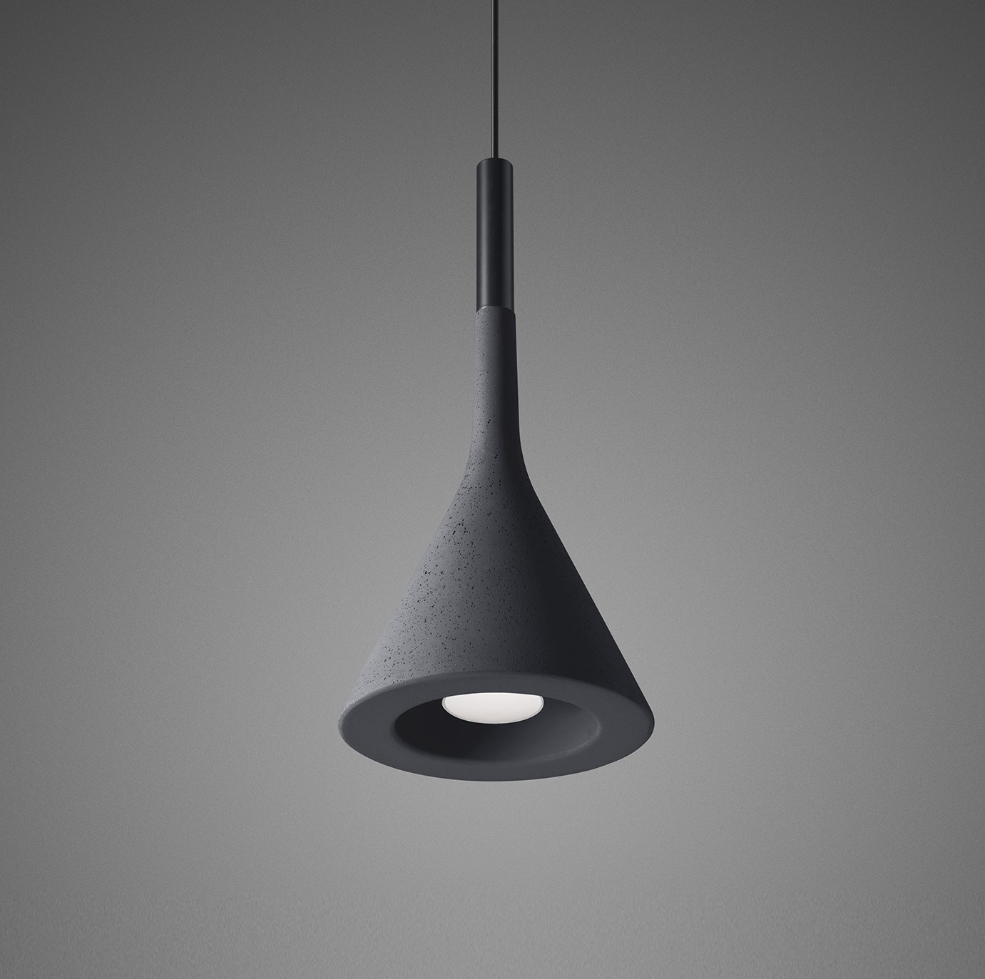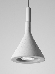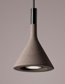 Ένα ειδικό, αποκλειστικά διαμορφωμένο σκυρόδεμα παίζει πρωταγωνιστικό ρόλο στα φωτιστικά Aplomb. Ένα μοντέλο που συνδυάζει την κομψότητα με την ιδιαίτερη υφή, διαχέοντας μια δέσμη φωτός προς τα κάτω.