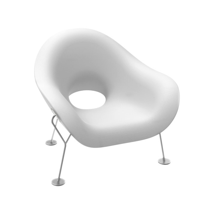 Ογκώδης και ελαφριά ταυτόχρονα, η πολυθρόνα Pupa στηρίζει τον φιλόξενο όγκο της σε μια λεπτεπίλεπτη μεταλλική βάση, ενισχυμένη με ηλεκτροστατική βαφή που την καθιστά κατάλληλη για εξωτερικό χώρο. Το άκρως αναπαυτικό της κέλυφος διατίθεται σε μαύρο, ροζ και λευκό.