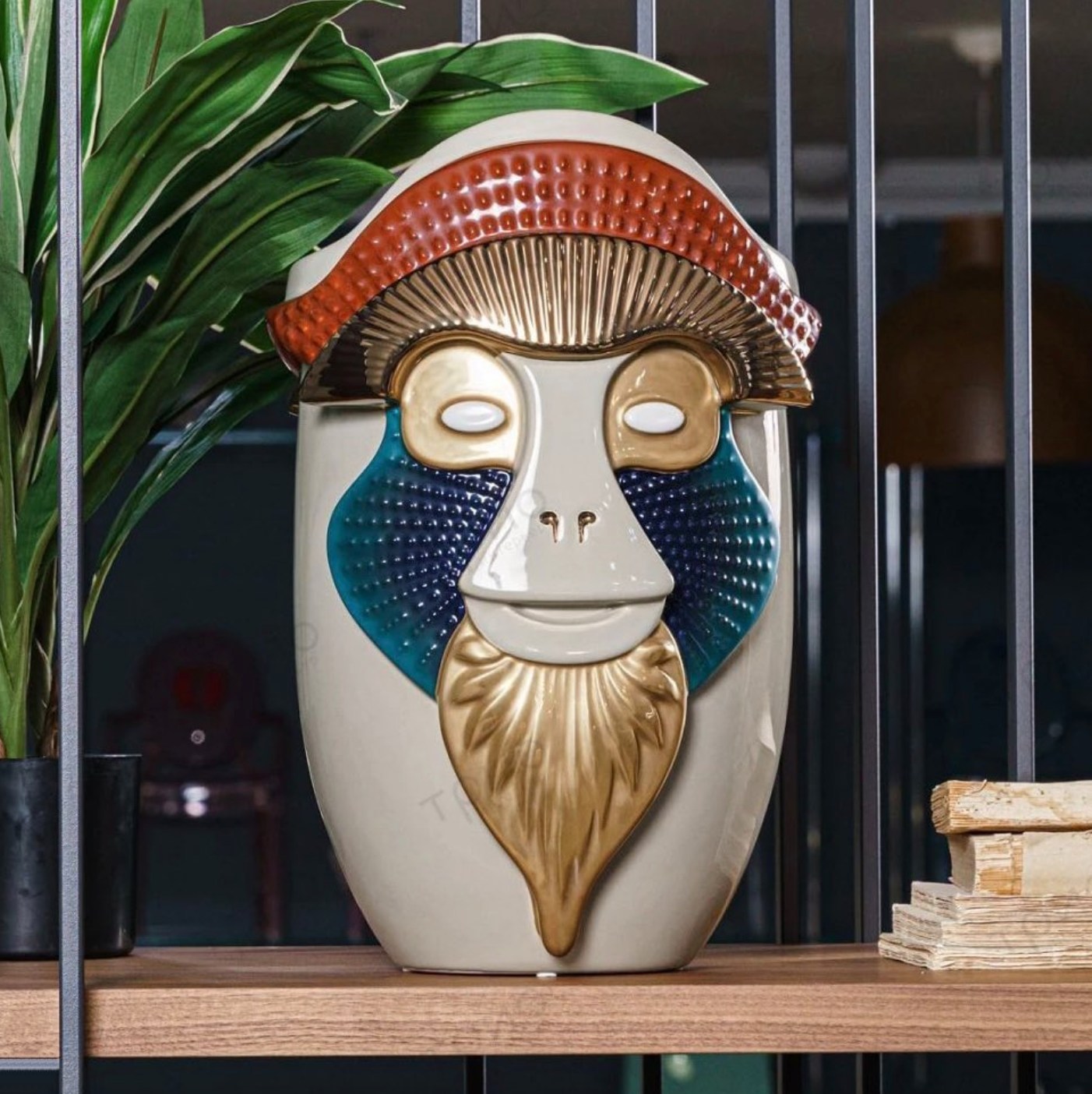 Εδώ βλέπουμε το βάζο Primates Brazza: Κερκοπίθηκος Ντε Μπράζα - ανήκει στην οικογένεια των Κερκοπιθήκων της Αφρικής.