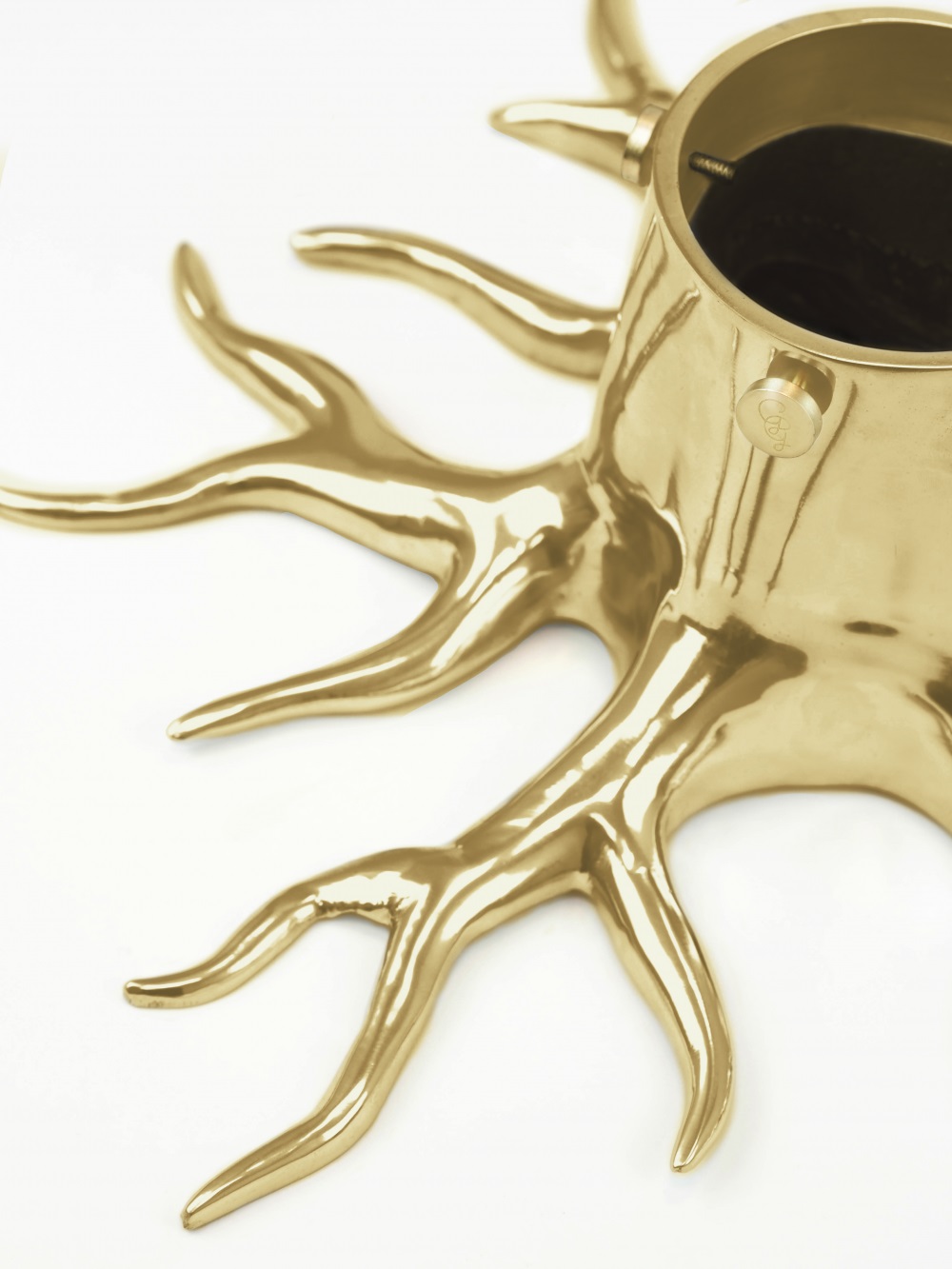 Ποιος λέει ότι η βάση του χριστουγεννιάτικου δέντρου πρέπει να είναι πράσινη ή κόκκινη και να μοιάζει με βιομηχανικό προϊόν; Η The Root, πλαισιώνει το χριστουγεννιάτικο δέντρο σας τέλεια και προσθέτει μια μοναδική design πινελιά στο χώρο σας. Το μαγευτικό σχέδιο ρίζας και η στιβαρή, σταθερή κατασκευή της, την έχουν ήδη προορίσει να γίνει holiday classic. Από ορείχαλκο, είναι ανθεκτική στη σκουριά.