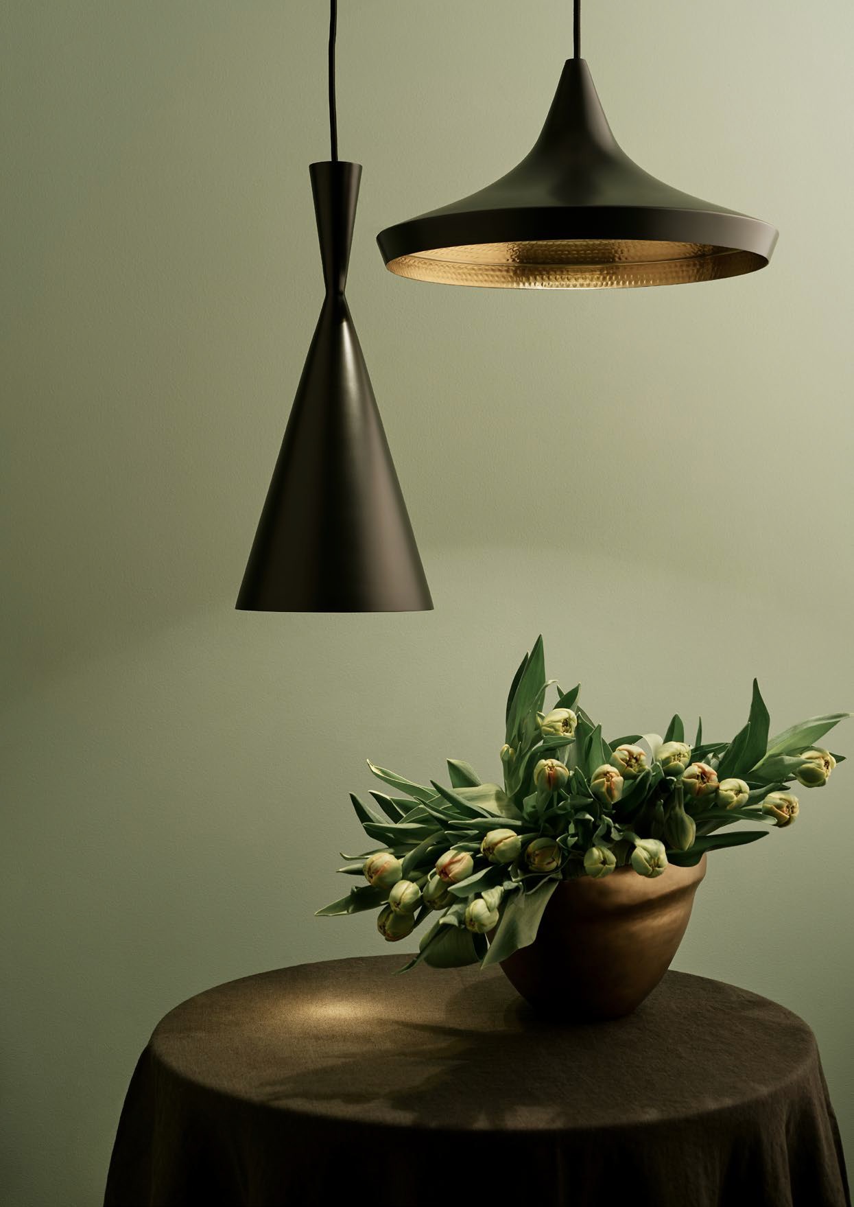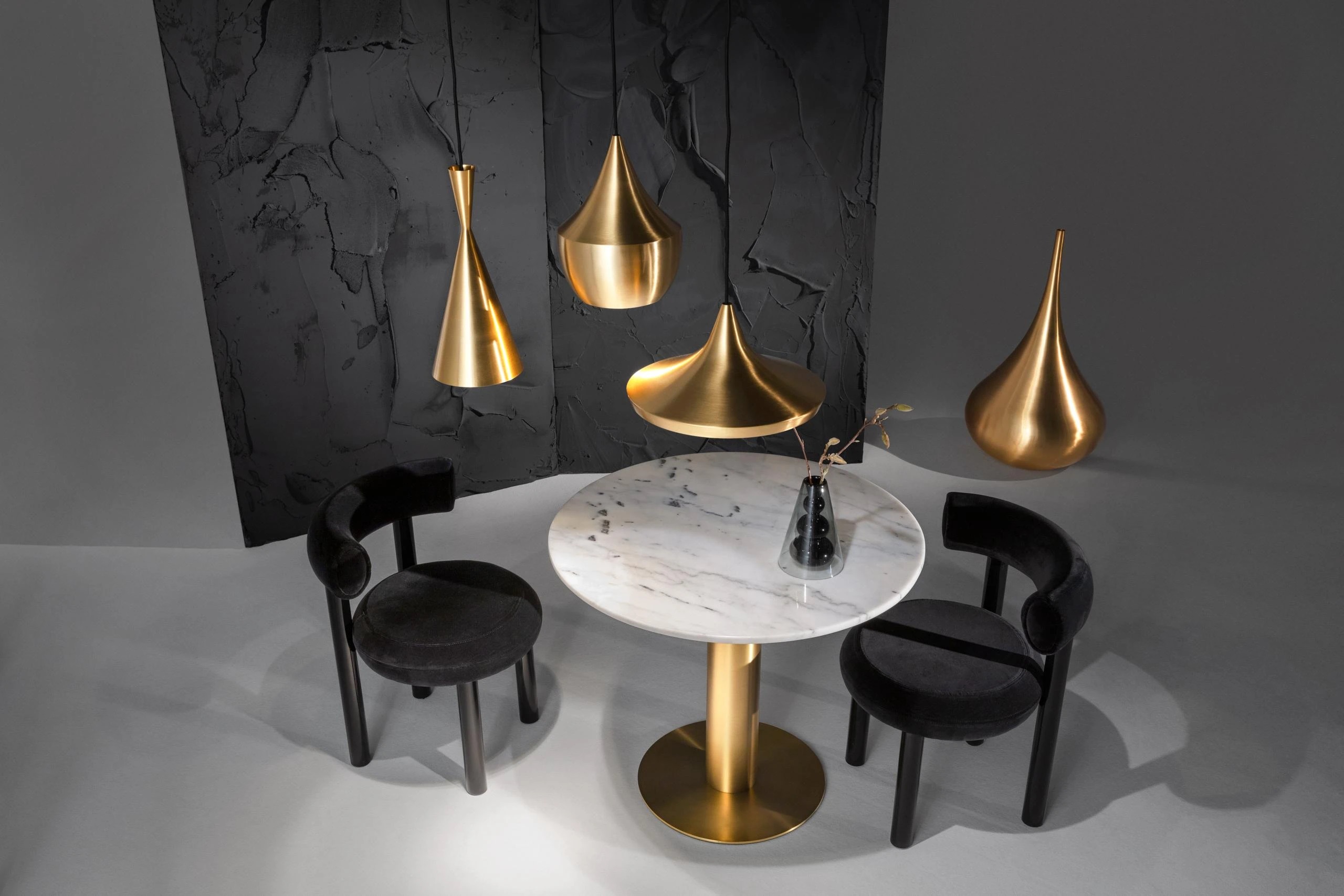 Κατασκευασμένο από συμπαγή ορείχαλκο, το φωτιστικό Beat διαθέτει μια εξωτερική επιφάνεια πατίνας σε αντίθεση με το ζεστό, χρυσό εσωτερικό του. Το Beat μπορεί να χρησιμοποιηθεί μεμονωμένα ή ως ομάδα χρησιμοποιώντας ένα ή περισσότερα σχήματα.