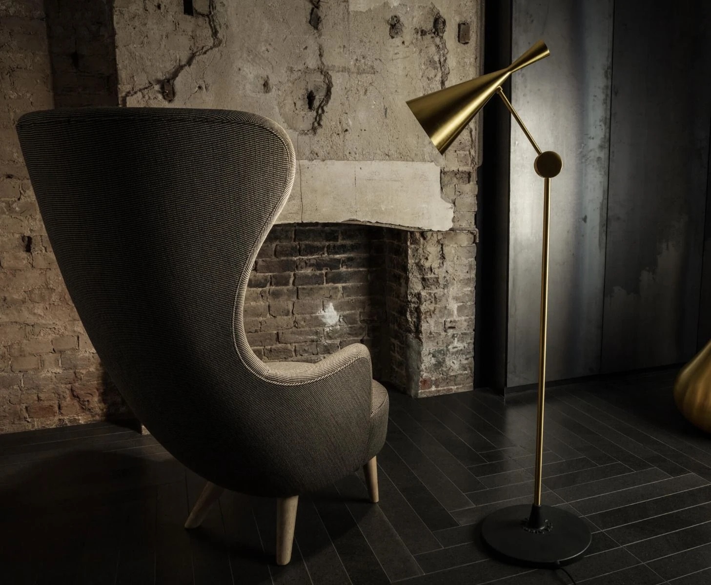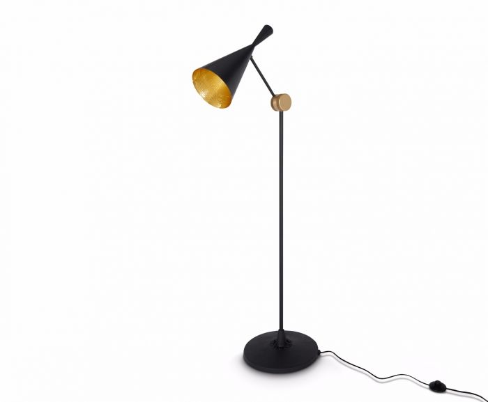 Μια παραλλαγή του περίφημου Beat Light, η επιδαπέζια έκδοση με ένα λεπτό αρθρωτό βραχίονα που ρυθμίζεται για να κατευθύνει τη φωτεινή δέσμη. Οι λεπτομέρειες από μασίφ ορείχαλκο και η βάση από χυτοσίδηρο προσδίδουν μια εμβληματική πινελιά σε οποιοδήποτε περιβάλλον. Το Beat Floor Light διατίθεται σε μαύρο και χρυσό.