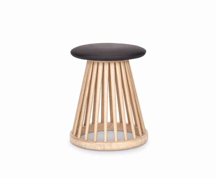 Το σκαμπό διατίθεται κατόπιν παραγγελίας σε ξύλο, φυσικό δρύ ή μαύρη σημύδα, με μαύρο δερμάτινο μαξιλάρι καθίσματος.