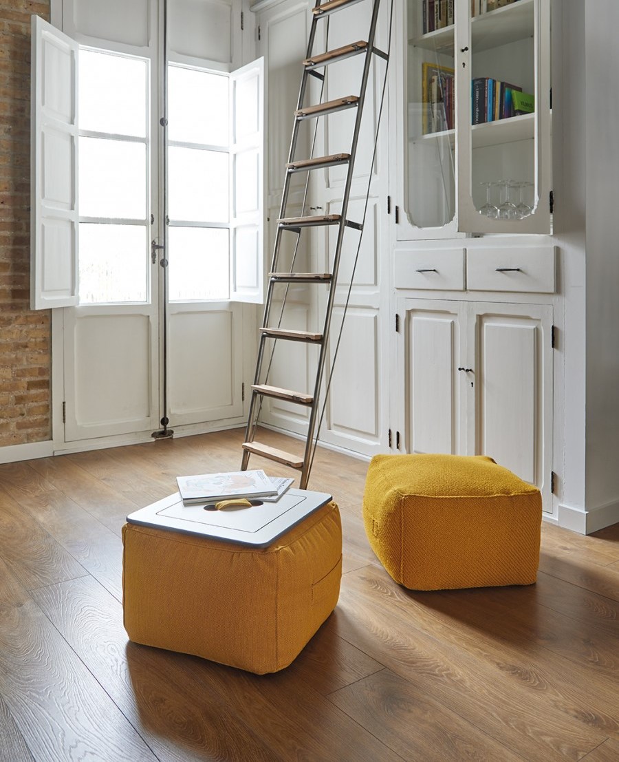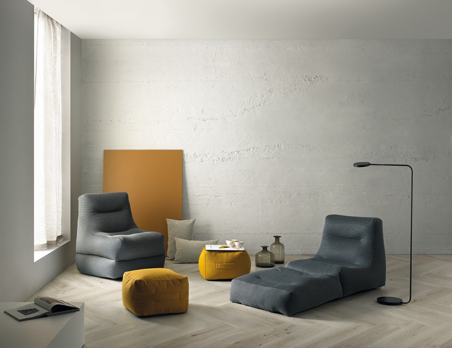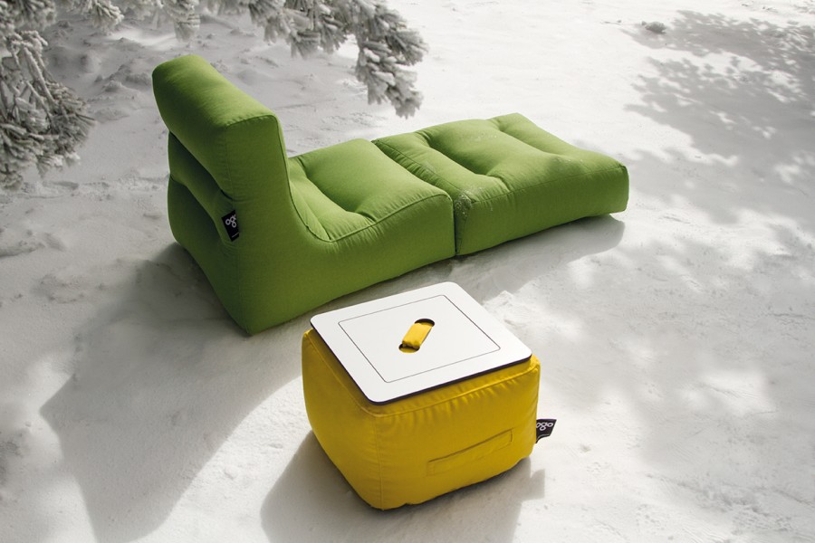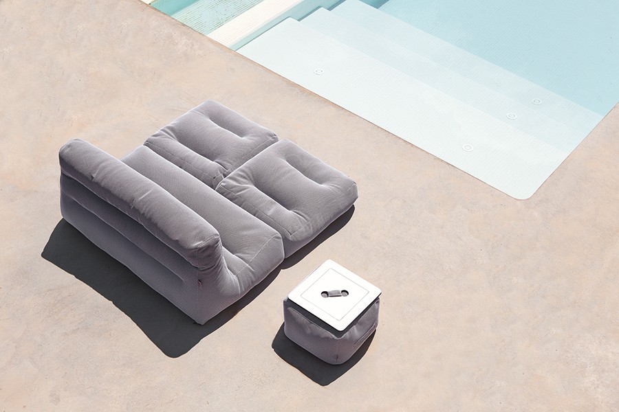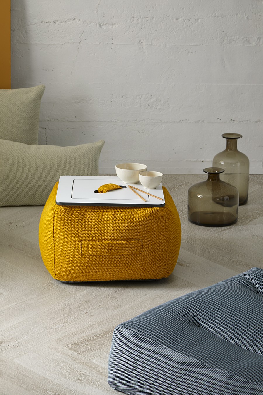 Διατίθεται σε πουφ και βοηθητικό τραπεζάκι.