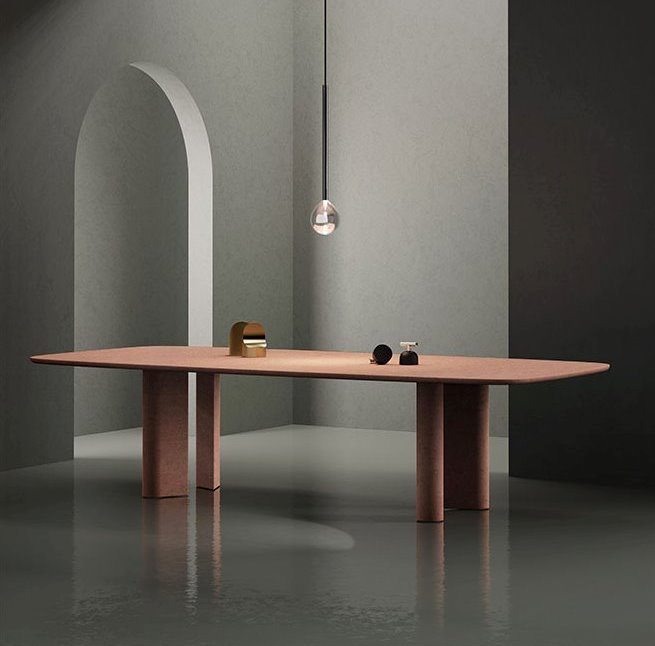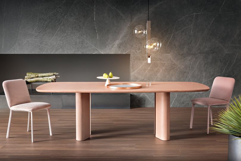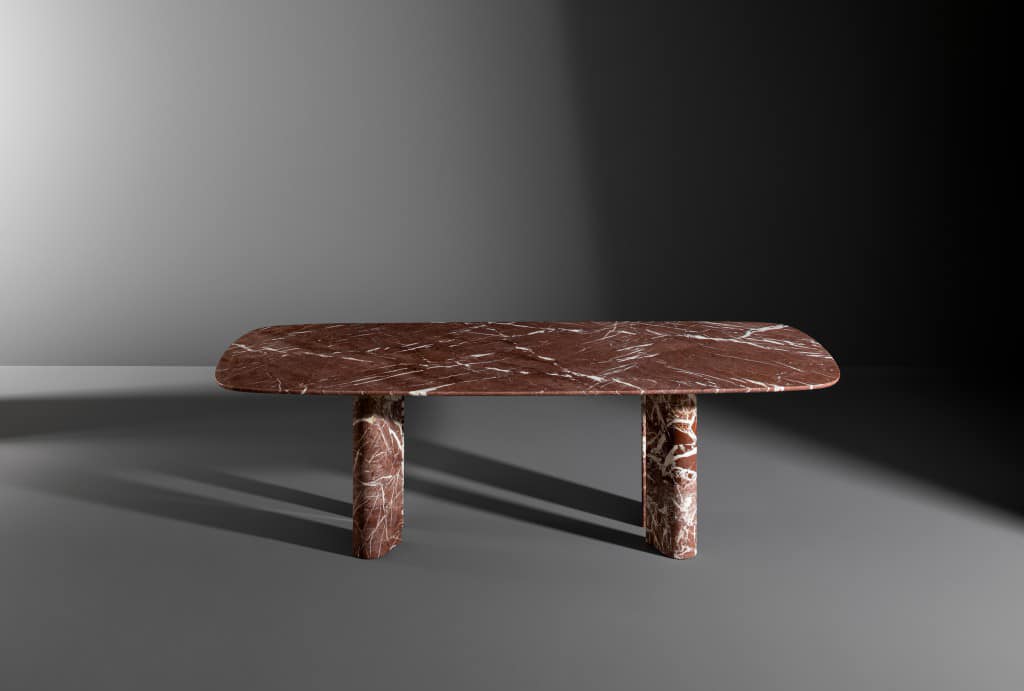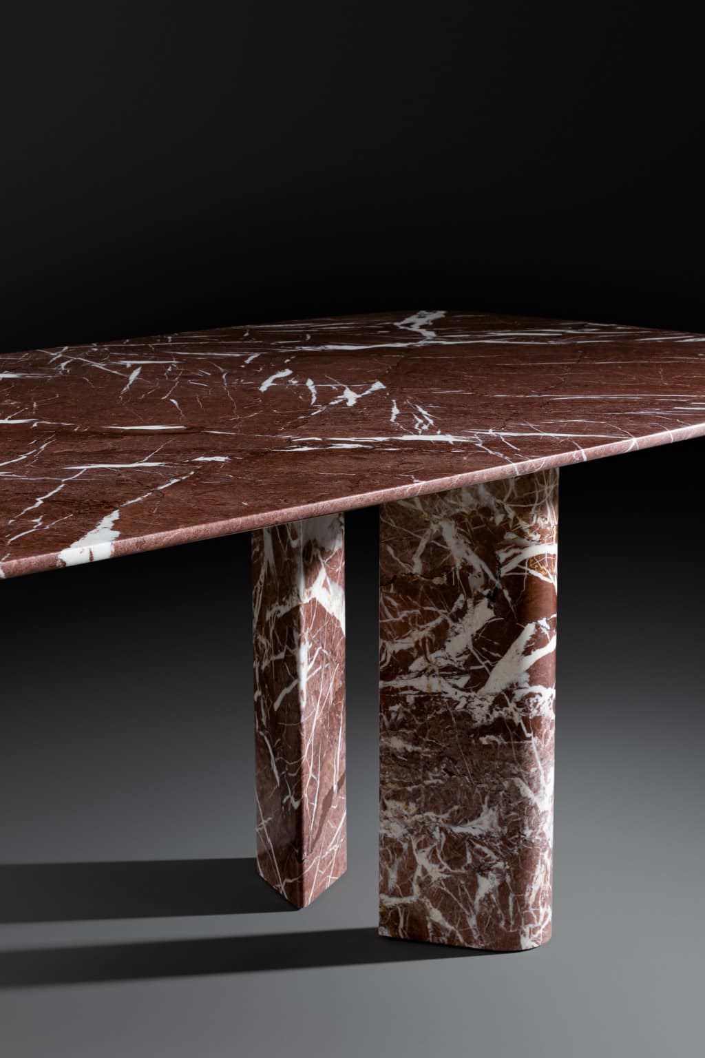 Είναι επίσης διαθέσιμη σε 3 εκλεπτυσμένες εκδόσεις Monomaterial εξ’ολοκλήρου με το ίδιο υλικό: έκδοση Clay σε ειδικό χειροποίητο σπατουλαριστό φινίρισμα από πηλό με εφέ τερακότα, που δίνει σε ολόκληρη την κατασκευή μια γλυπτική εμφάνιση, έκδοση Wood, όπου ο έβενος χρησιμοποιείται για την κατασκευή τόσο της επιφάνειας όσο και της βάσης, σαν να ήταν σκαλισμένο το τραπέζι από ένα μόνο κομμάτι ξύλου και τελευταίο αλλά όχι λιγότερο σημαντικό το Geometric Marble με εξ’ολοκλήρου μαρμάρινη επιφάβεια και βάση.