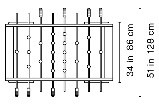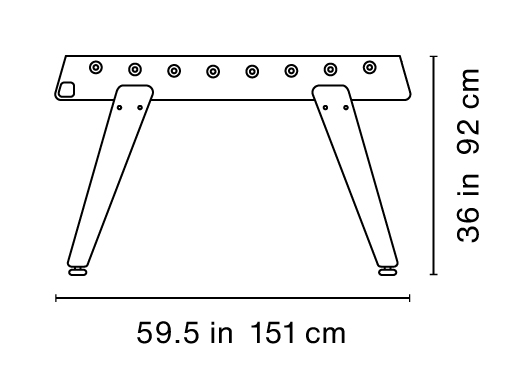 Υλικό: Σκελετός: Ατσάλι. Πεδίο: HPL. Παίκτες: Χυτό αλουμίνιο. Λαβές και πόδια: ξύλο Iroko.