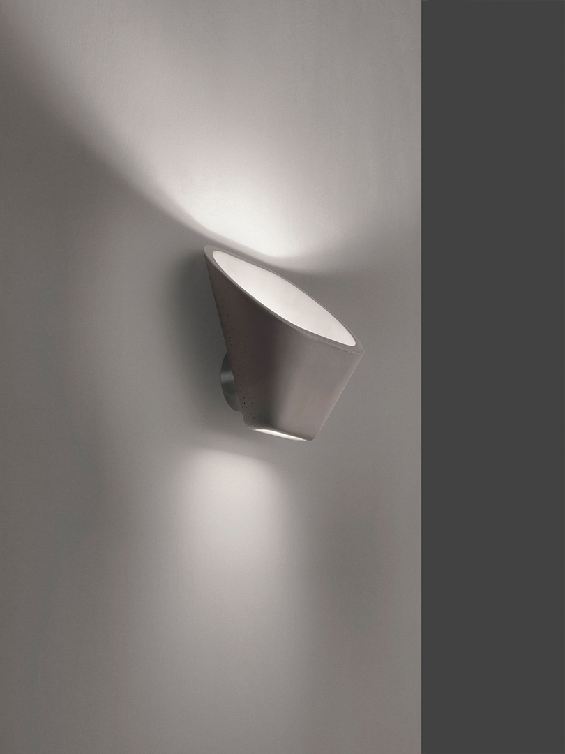 Αποτελεί αναπόσπαστο μέρος της αρχιτεκτονικής, αλλά με την δική του προσωπικότητα στο συνολικό σχεδιασμό, το επιτοίχιο φωτιστικό Aplomb είναι κατασκευασμένο με ειδικό σκυρόδεμα που απελευθερώνει ένα διπλό εφέ φωτισμού, προς τα πάνω και προς τα κάτω.