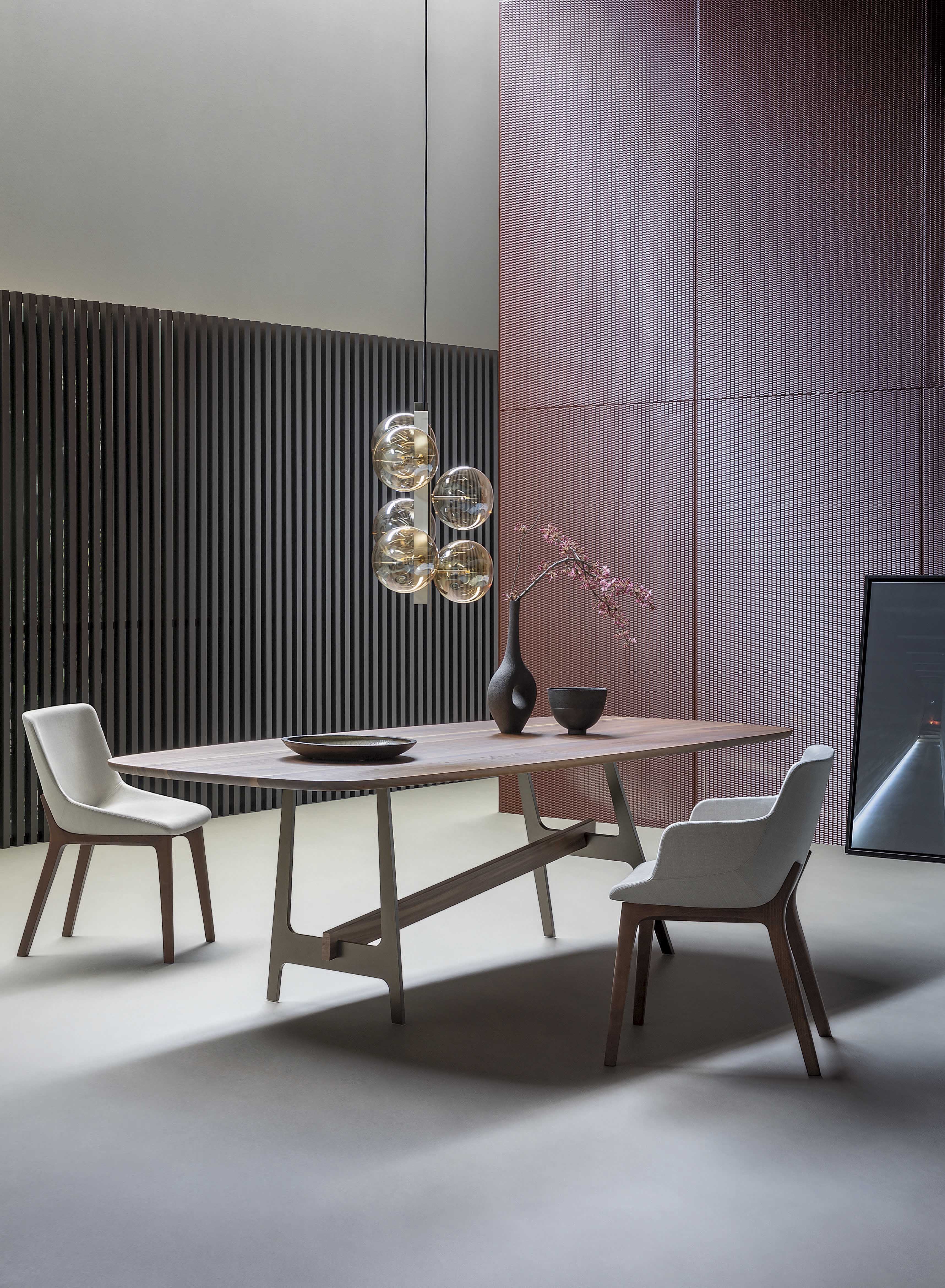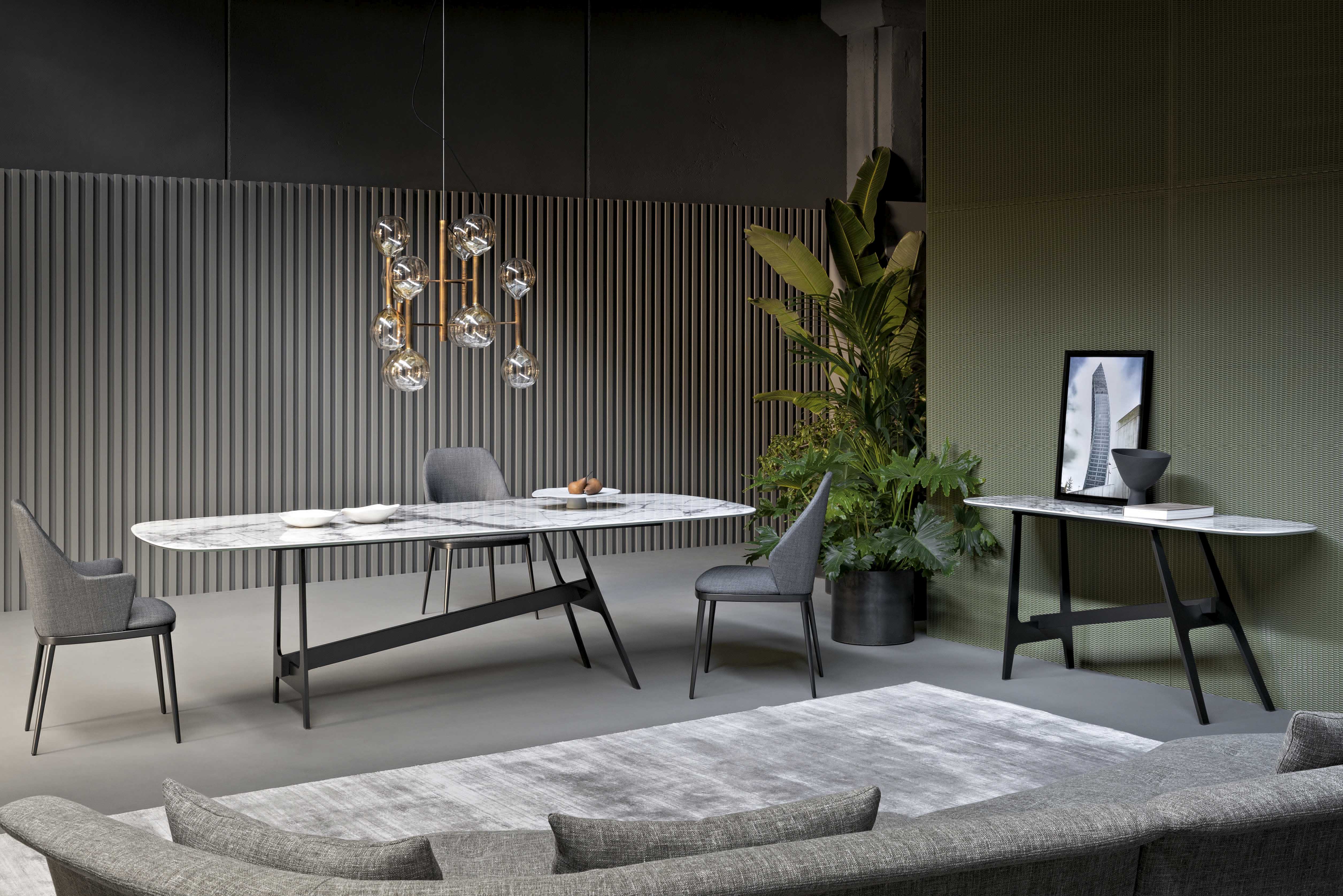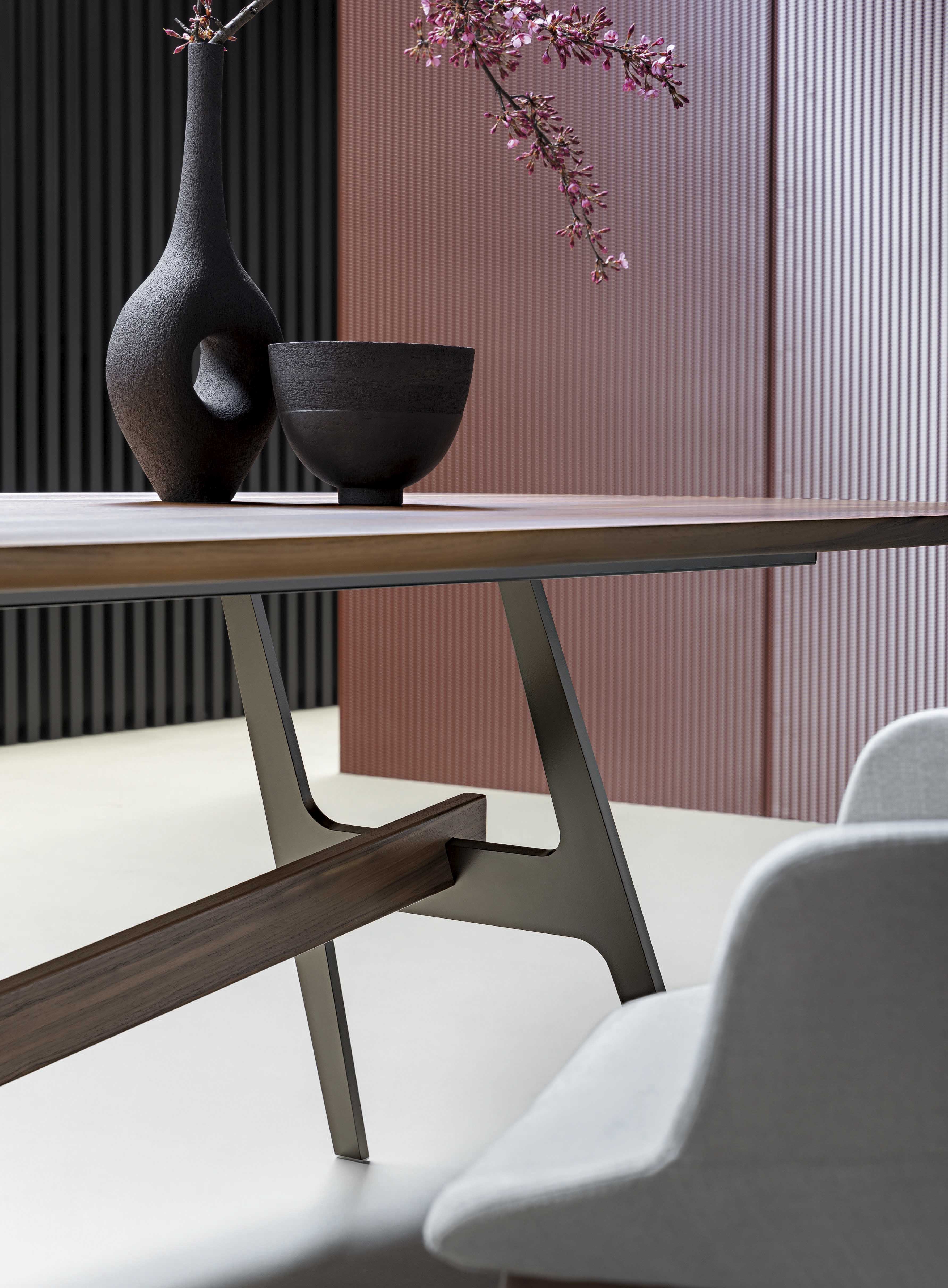 To Slot ενσαρκώνει την εκτενή επίσημη και τεχνολογική έρευνα που υποστηρίζει πάντα τα προϊόντα της Bonaldo. Για αυτή τη συλλογή, ο σχεδιαστής Giuseppe Viganο εμπνέεται από τον κόσμο της γεωμετρίας, από τον οποίο δανείζεται διαφορετικά σχήματα και τα εναρμονίζει σε ένα ενιαίο σχέδιο. Η συλλογή παίζει με ελάχιστα σχήματα: η οριζόντια επιφάνεια υποστηρίζεται από δύο βάσεις με χαρακτηριστικό σχήμα Η, μία κάθετη και μία κεκλιμένη, ενωμένη από ένα εγκάρσιο στοιχείο που προσδίδει μια αίσθηση κίνησης. Τα πόδια και το κεντρικό κομμάτι είναι κατασκευασμένα από μέταλλο, ενώ η επιφάνεια με στρογγυλεμένες γωνίες διατίθεται σε διαφορετικά φινιρίσματα, από ξύλο έως κεραμικό, μάρμαρο και κρύσταλλο, δημιουργώντας συνδυασμούς υλικών που είναι πάντα διαφορετικοί και μπορούν να ανταποκριθούν σε οποιαδήποτε απαίτηση επίπλωσης και στυλ. Διατίθεται κατόπιν παραγγελίας.