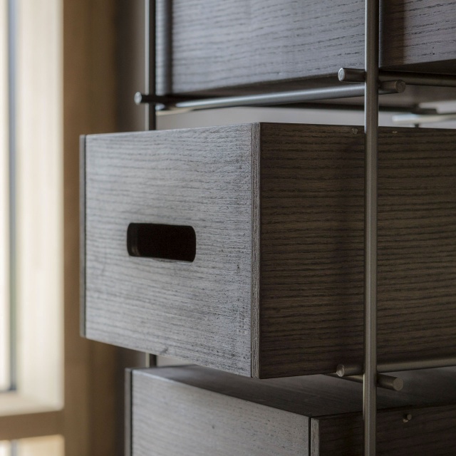 Υλικό: metal burnished structure and storage units in solid ash wood